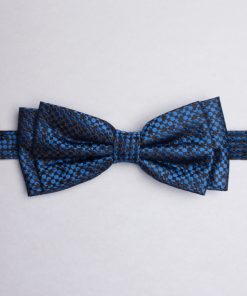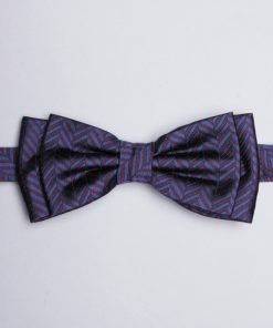 Coton Doux Uniex Blue And Plum Bow Tie With Herringbone Patterns