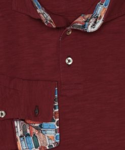 Coton Doux Men’s Wine Coloured Regular Fit Long Sleeves Polo Shirt With Doors Inner Lining Print