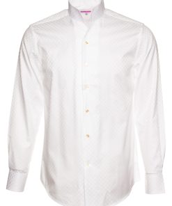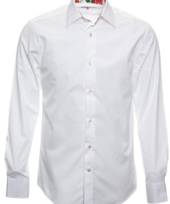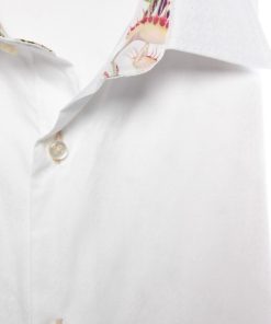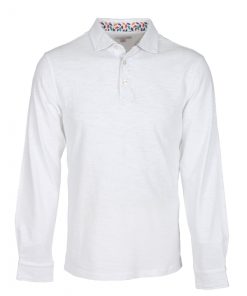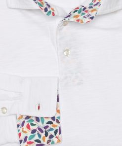 Coton Doux Men’s White Regular Fit Long Sleeves Polo Shirt With Tree Leaves Inner Lining Print