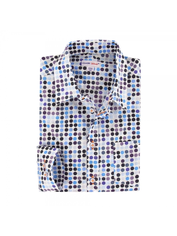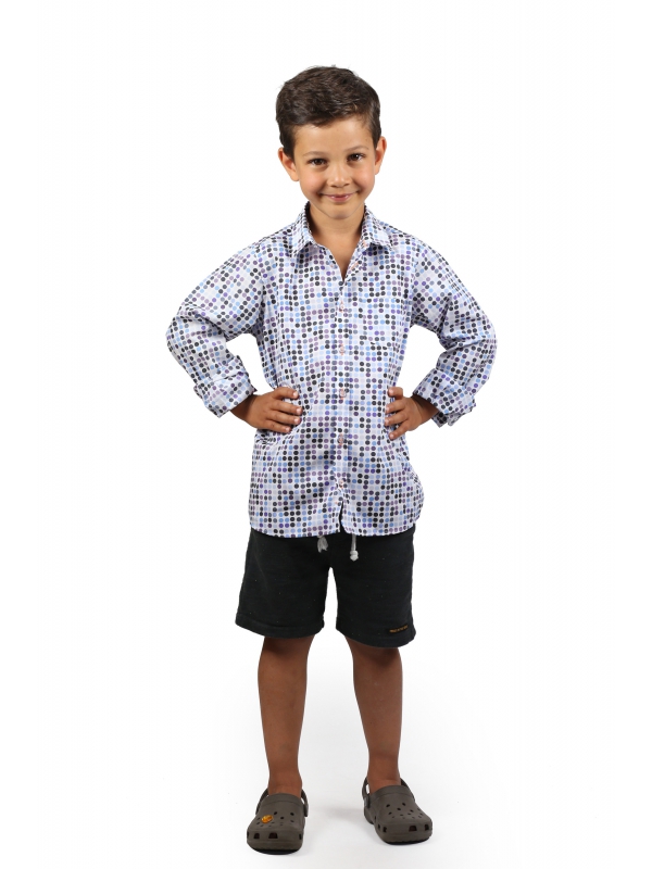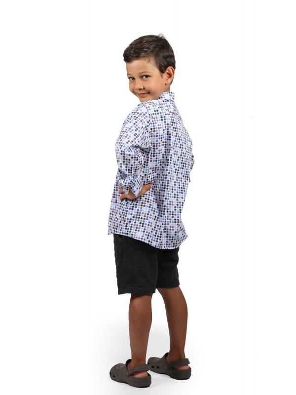 If your child is sensitive to graphic design and colours, you won’t go wrong with this shirt’s very Seventies confetti patterns. For a special occasion, its close-fitting cut and its two-button cuffs make it superb under a suit. Guaranteed to look chic and stylish.