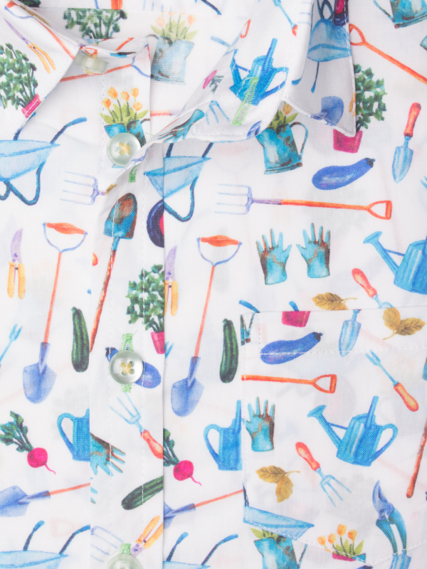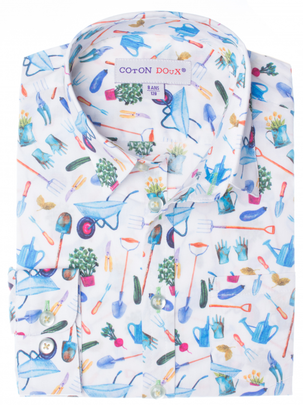 Cultivate the taste of elegance in your child with this gardening printed shirt. Its loose fit, double-button cuffs and the loose collar will enhance a pair of jeans or trousers. Spring or summer, automn or winter, any season will be good to sport this shirt!