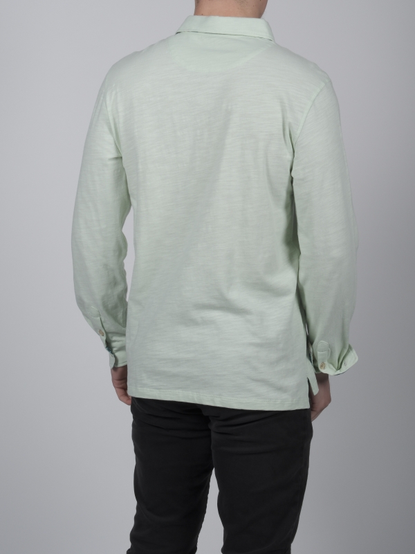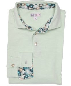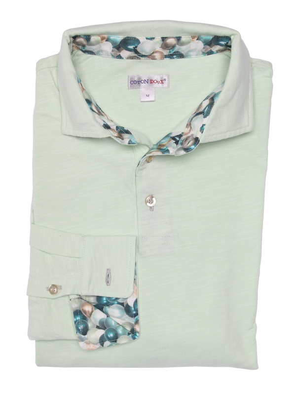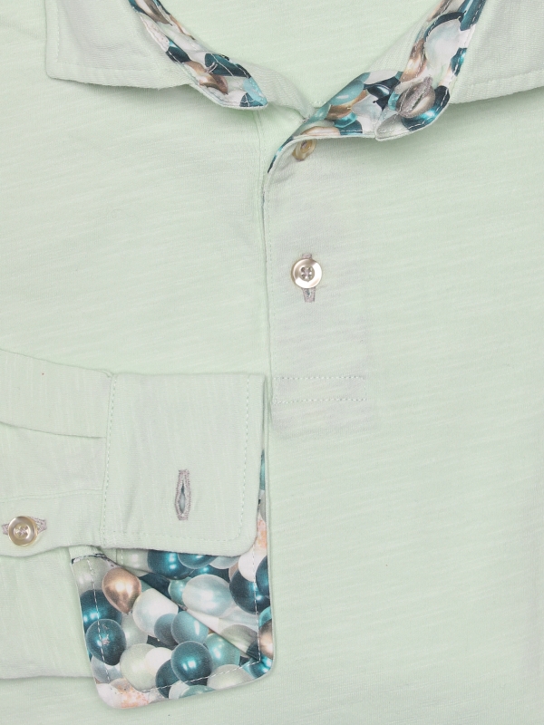 You love surprise parties and want to make a hit when you walk in? It’s time to add this almond green pure cotton long sleeves polo shirt with balloon inner lining print to your shopping cart! The colour of this polo shirt will echo the pattern on the inside of the cotton piqué collar and under the two-button placket, ensuring a great of pleasure. The slim fit and double button cuffs will make you feel as light as a party balloon. Match it with light brown shorts and a pair of brown loafers and you’ll be the king of the party!