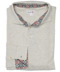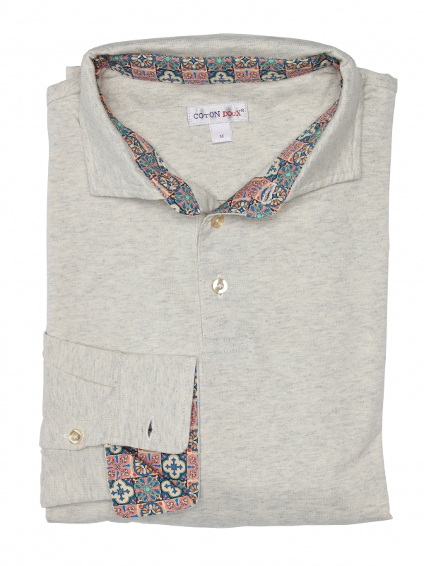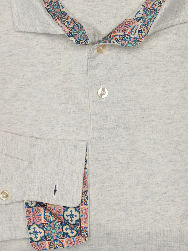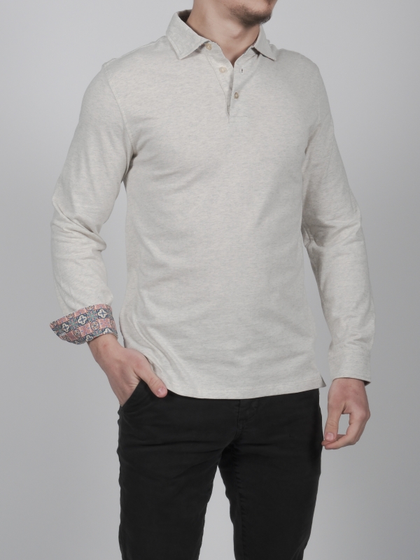 In love with your escapades in the Andalusian space, this beige long sleeves polo shirt in pure cotton with mosaic inner lining print is made for you! Reminisce about your sweet holiday memories with its cotton piqué collar and two-button placket, we guarantee you a nostalgic effect! Its slim fit and double button cuffs will give you a very contemporary style without being too extravagant. Cement it with cream trousers and brown boots to be at the top of your game!