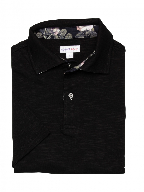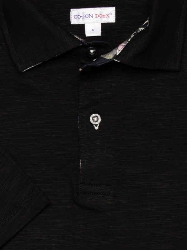 Subtly bring out the rocker in you with this black regular fit polo shirt with skull and flower inner lining print. Leave the cotton pique collar and two-button placket slightly open to keep things mysterious, and complement the slim fit with cream trousers for an elevated look. The pure cotton composition and sleeves are sure to make you a fan… Coton Doux dares you to resist!