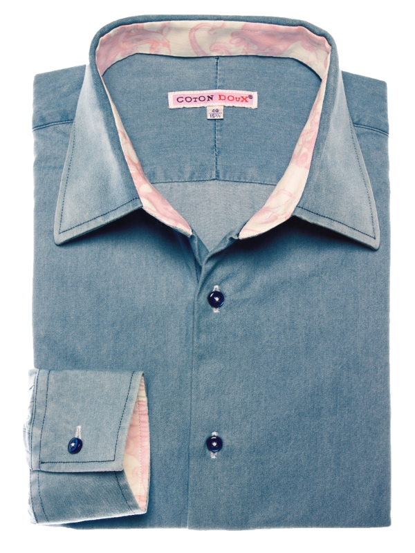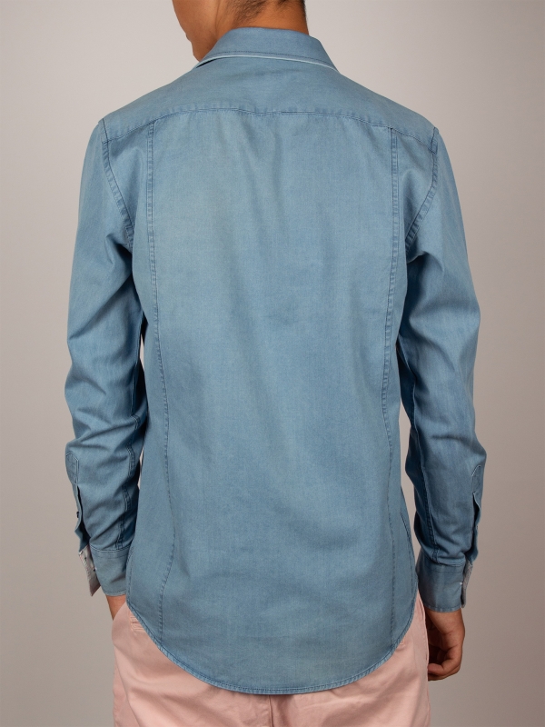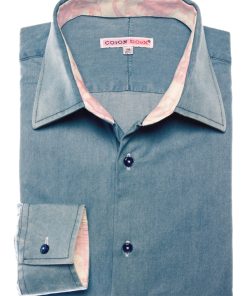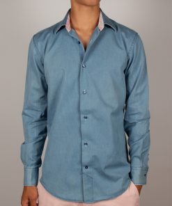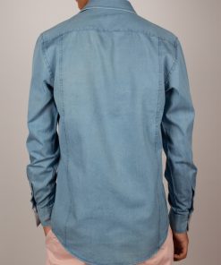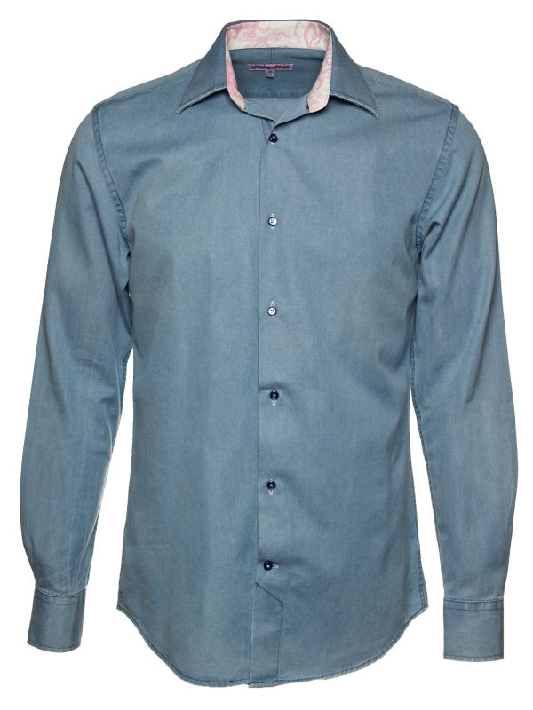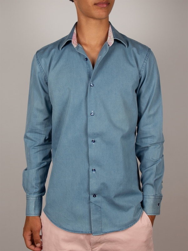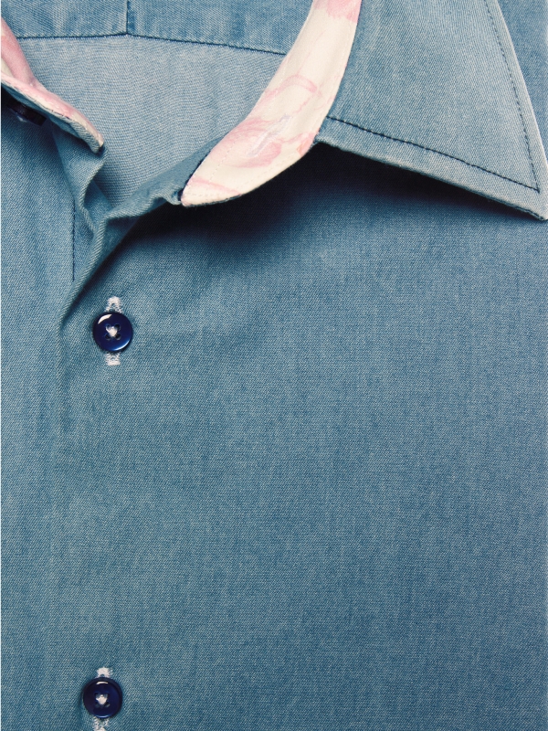 This blue denim shirt with a tailored regular cut subtly combines elegance and originality. Made from soft, lightweight fabric, it ensures all-day comfort. The simple cuffs highlight its clean, modern design, while the inside reveals a playful surprise; a discreet yet bold octopus print that adds a creative and unique touch.