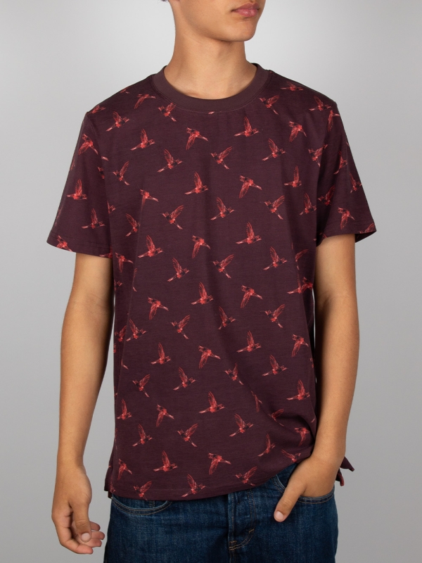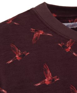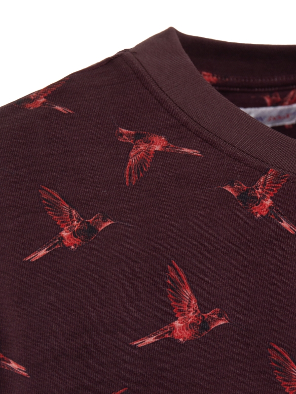 Coton Doux Men’s Burgundy T-shirt With Hummingbird Print