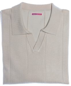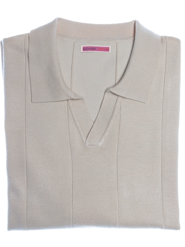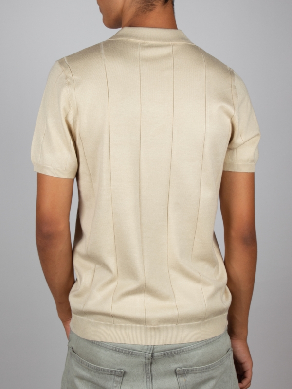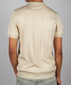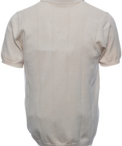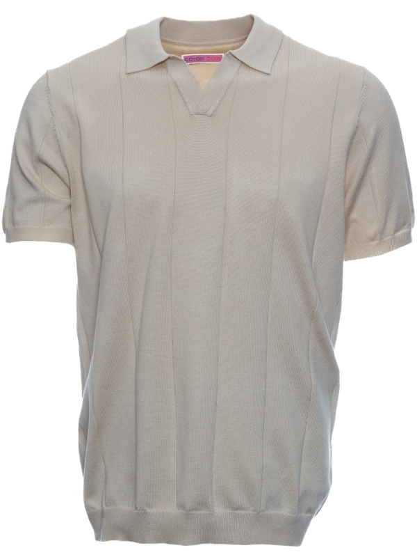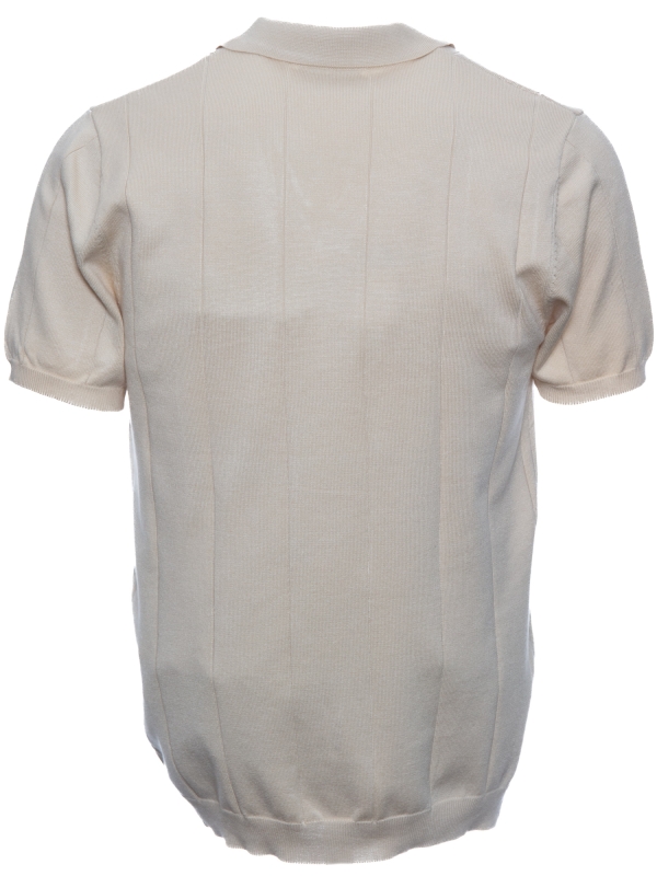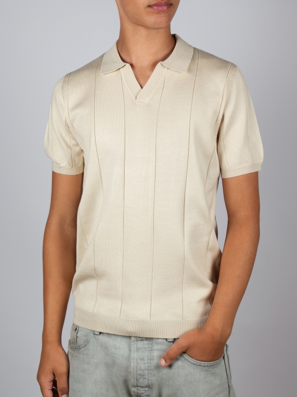 Coton Doux Men’s Cream Open-collar Polo With Textured Stripes