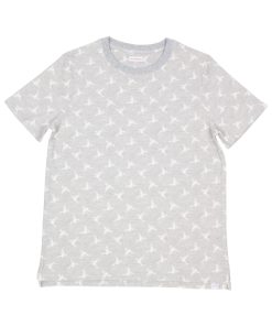 Heather grey T-shirt with white hummingbird print. Made from mercerized cotton for a soft, comfortable feel. Unisex straight cut with a ribbed crew neck, back neck yoke, and side slits for a modern touch. Finished with double-needle stitching for added durability. Perfect for a casual yet elegant summer look.