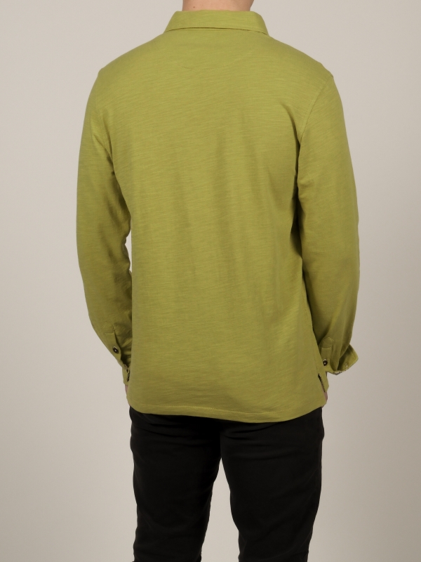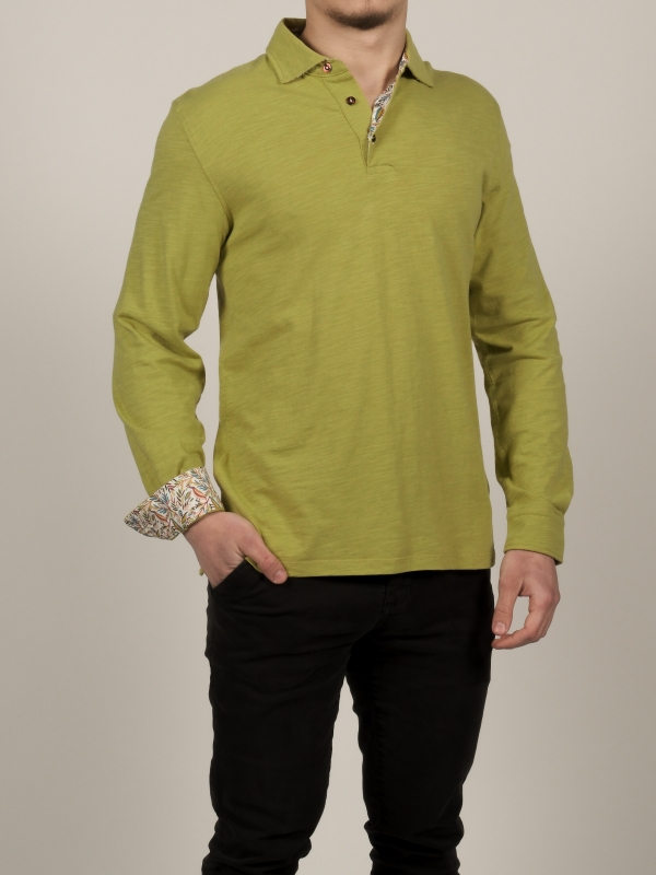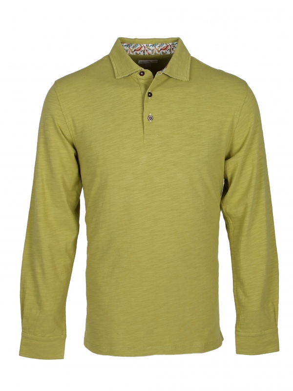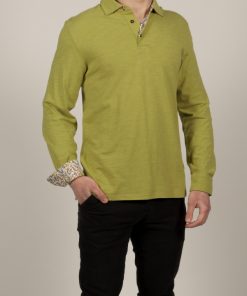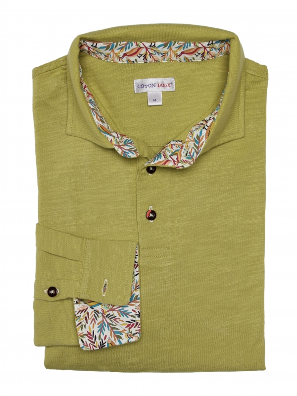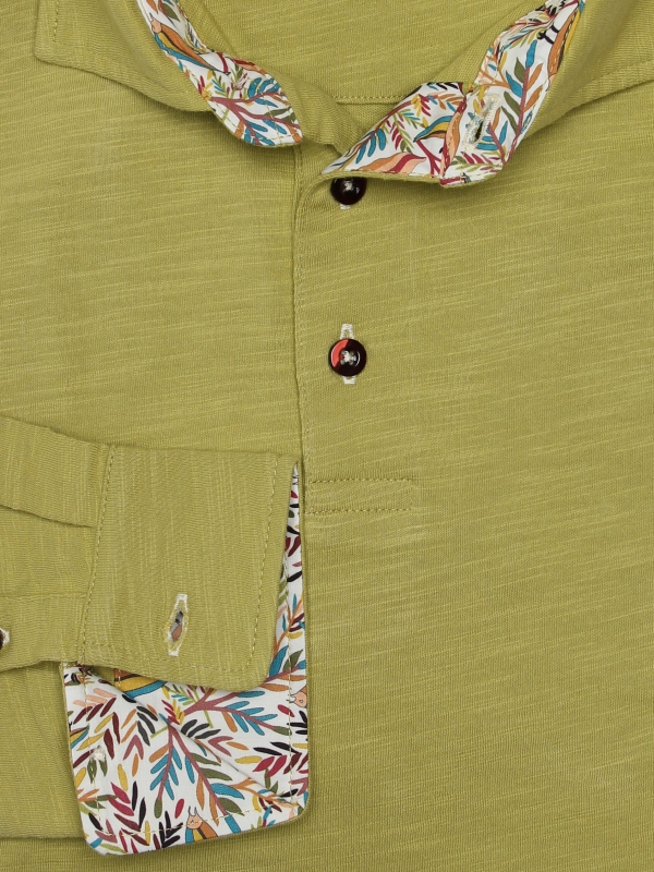 Coton Doux Men’s Olive Green Regular Fit Long Sleeves Polo Shirt With Tree Inner Lining Print
