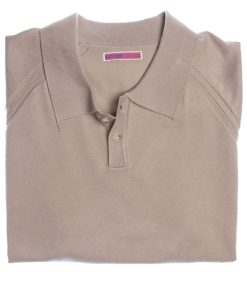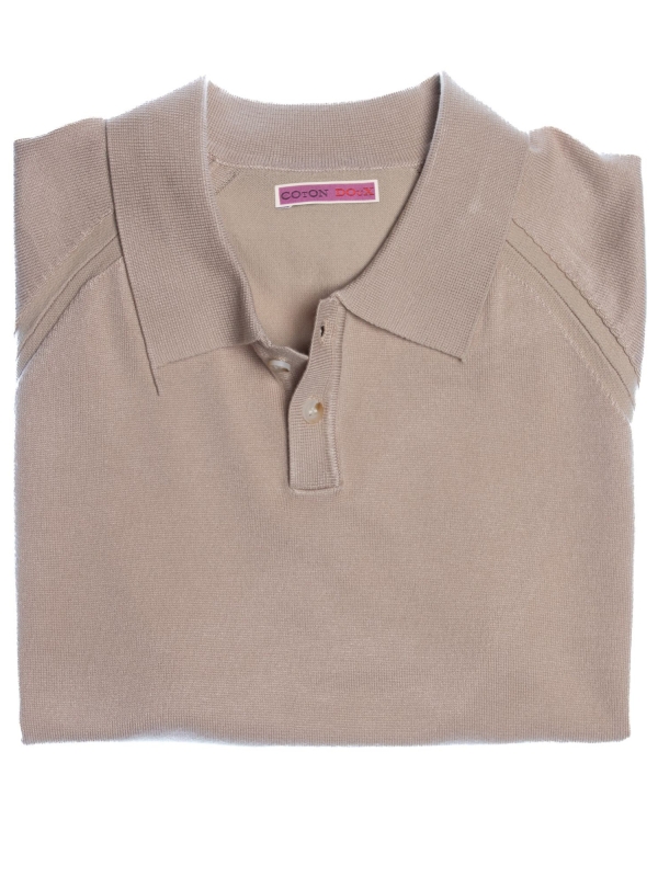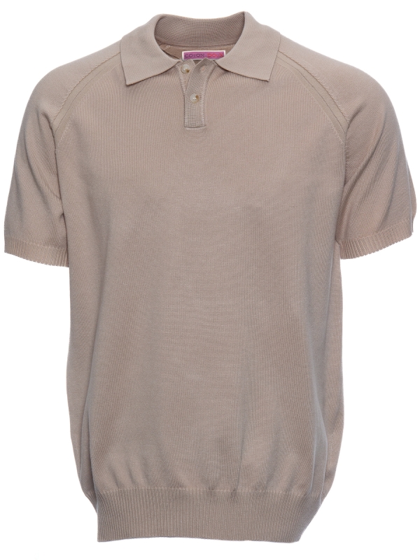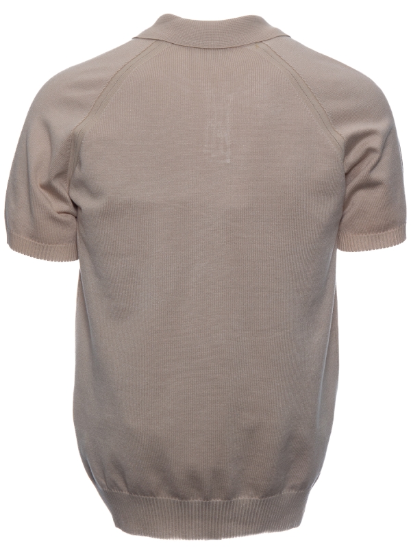 This beige knit polo stands out with its soft, natural tone. Designed with a classic collar, two-button placket, regular fit, and short sleeves, it embodies a clean and refined brightness.