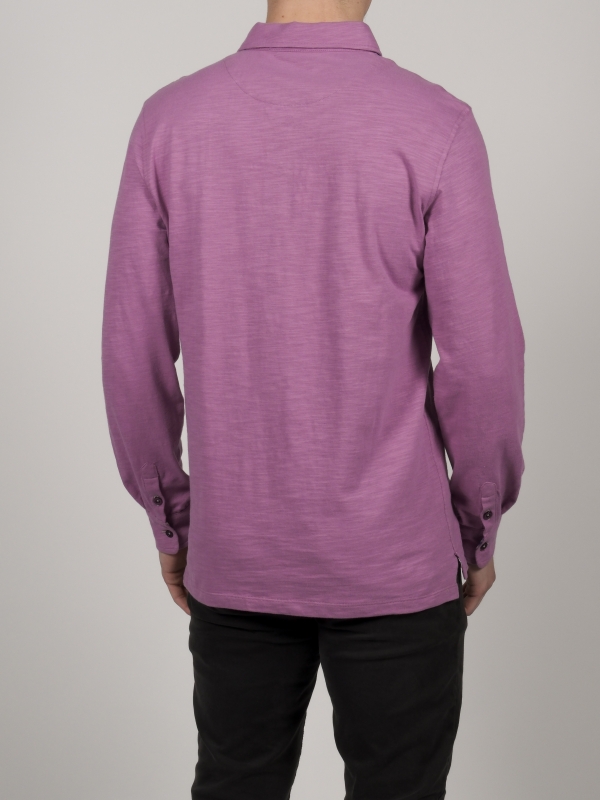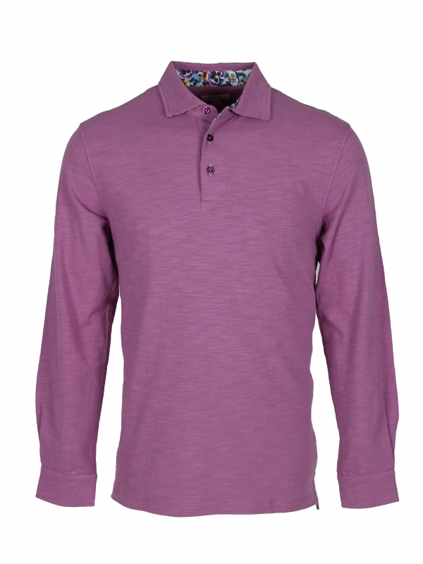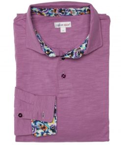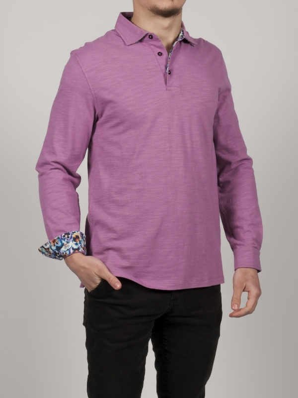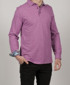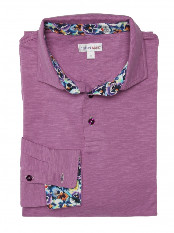 In the language of flowers, pansy means ‘don’t forget me’ and that’s what this purple pure cotton long sleeves polo shirt with thoughts inner lining print is all about. The cotton piqué collar and two-button placket will have you thinking of us every time you wear it. The slim fit and double button cuffs will give you comfort and elegance at any time of the day! Top it off with black tapered chino trousers and black derbies and you’ll be ready for a dressy evening!