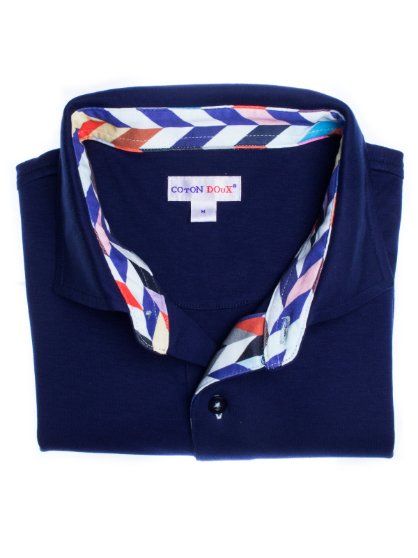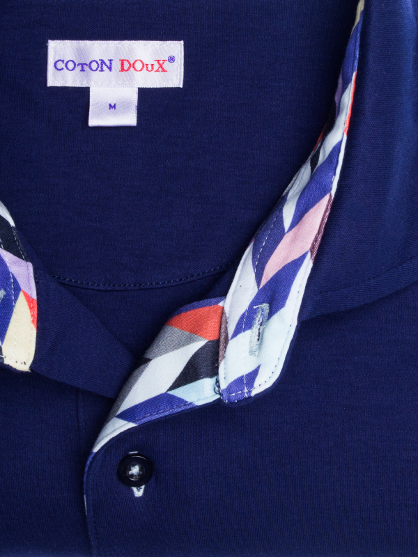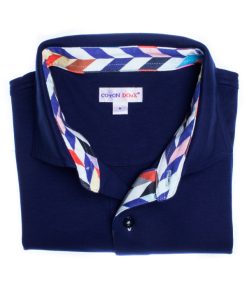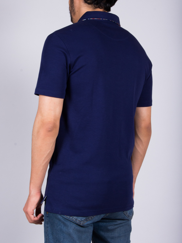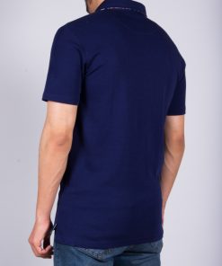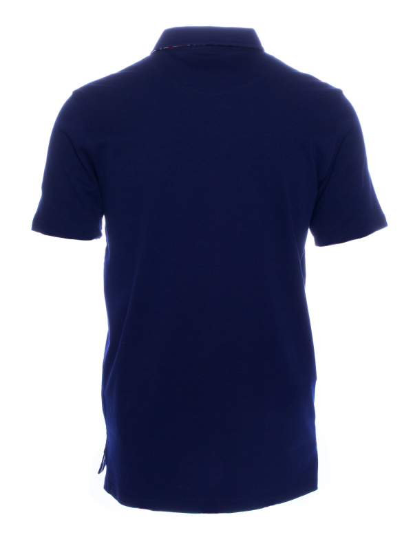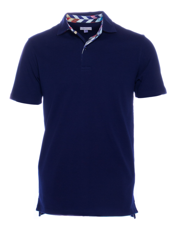 Cheer up your look wearing this regular fit plain blue polo shirt with herringbone inner lining print. The parsimony of this pattern and the mercerized cotton jersey will allow you to wear it every day with all your clothes. Remain elegant thanks to the cotton quilted collar and the two-button placket. Favor colored trousers and brown leather shorts to be the trendiest man!