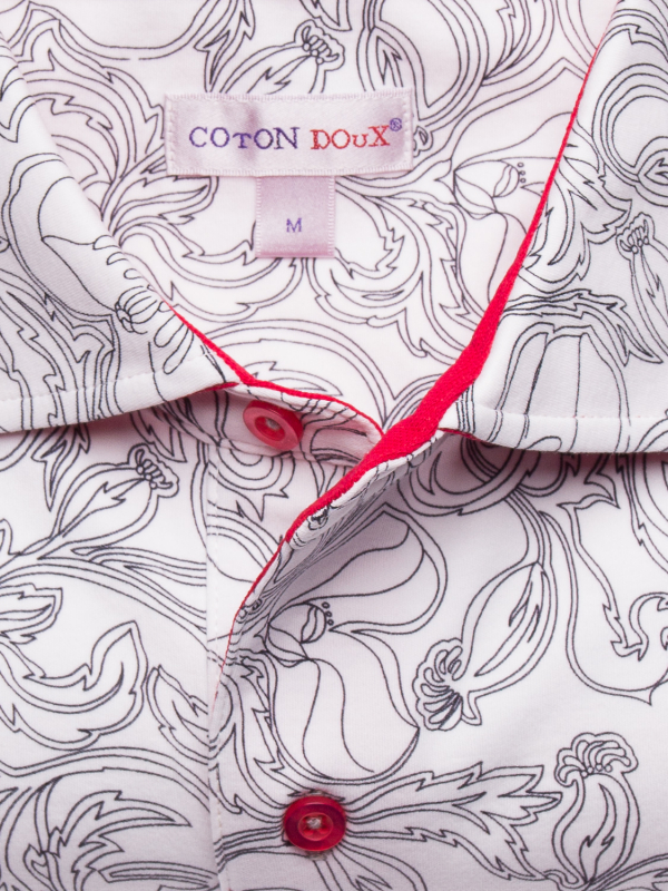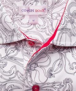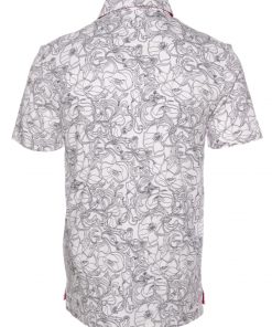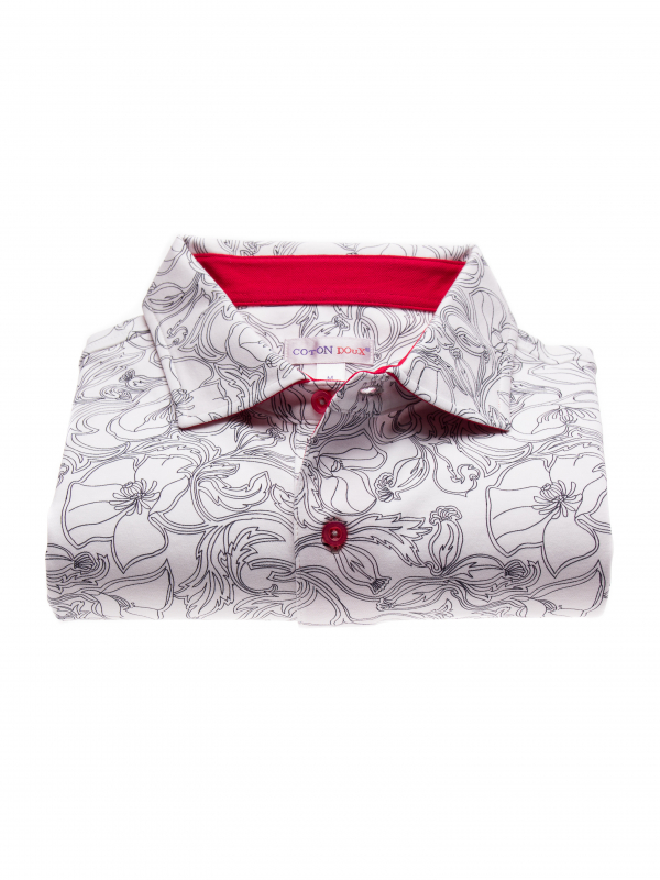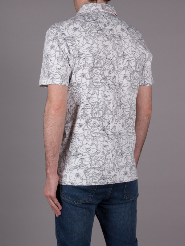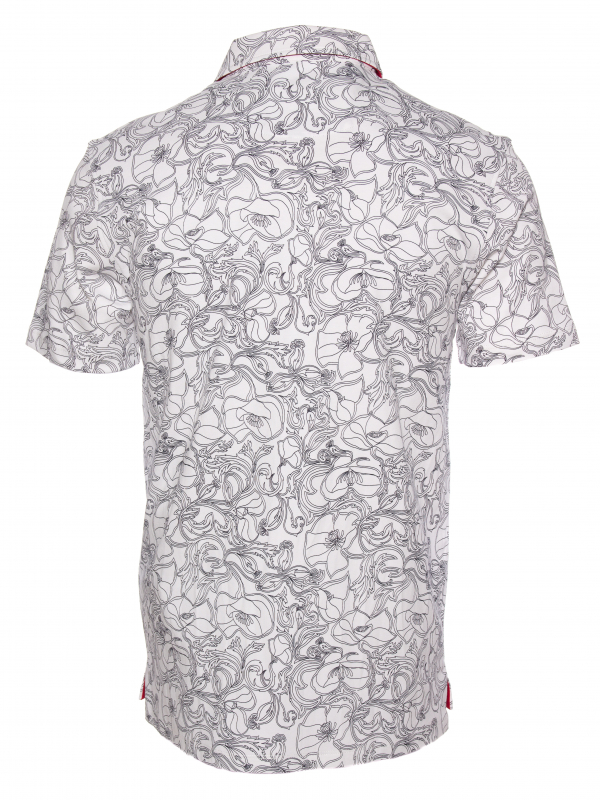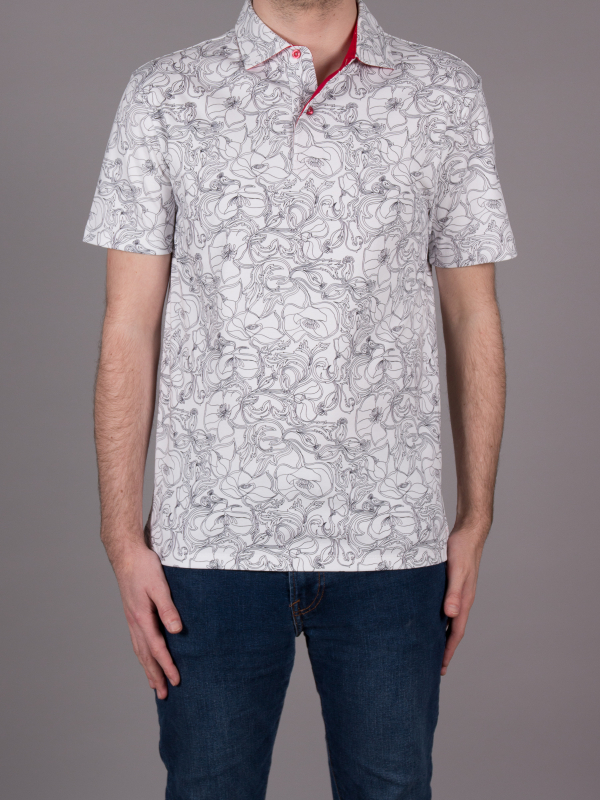 What better way to hypnotize your audience than with this polo shirt with black and white flower print. Its composition in cotton jersey, its two-button placket and its regular fit make this polo shirt a pleasant outfit to wear. The orange cotton piqué collar is the colorful touch of this discreet look. Wear it with black jeans and white sneakers.