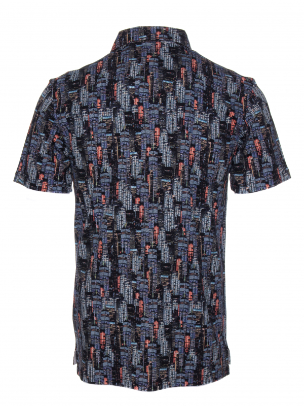 Are you a convinced city man? Affirm it with this polo shirt with the buildings print. Thanks to this night shot, you will be able to wear these colors easily with all your jeans: black, grey, raw, light. Its composition in mercerized cotton jersey, its regular fit and its double button will give you softness and comfort to complete your day. Plan to wear it on the evening? Slip it under a light grey cardigan and bring out its cotton piqué collar in the same tone.