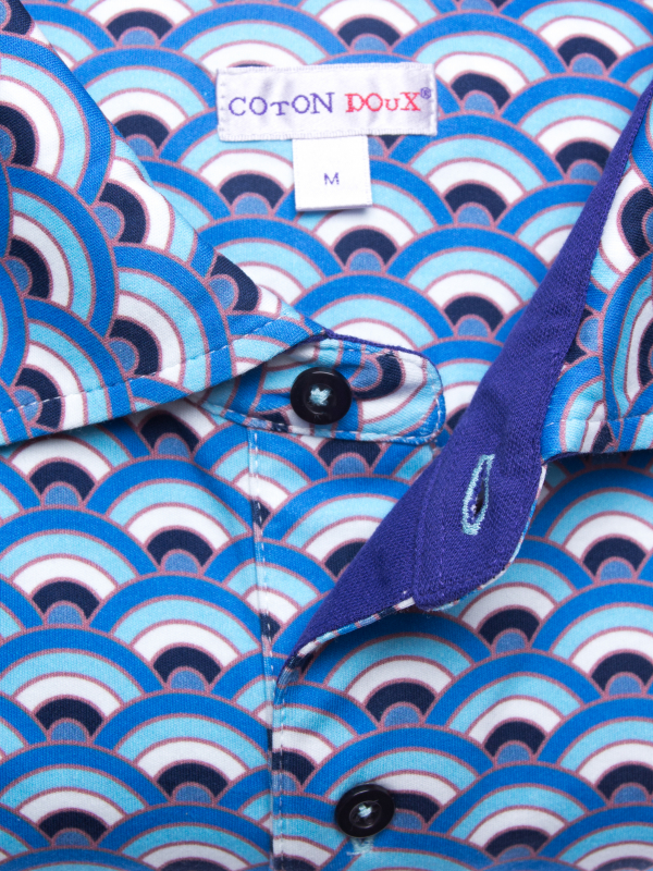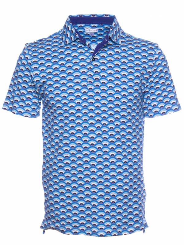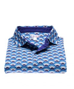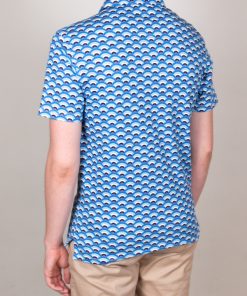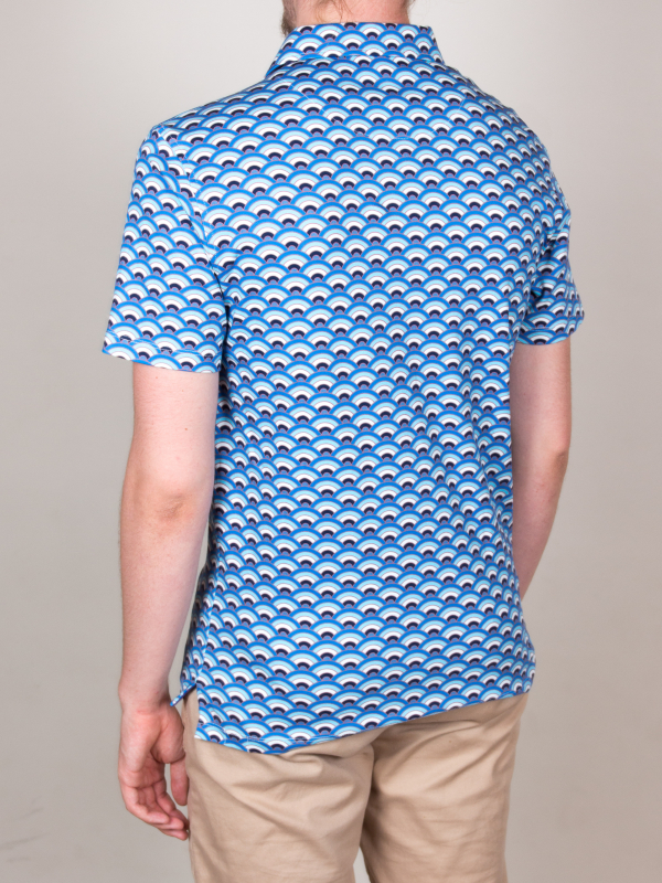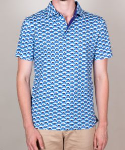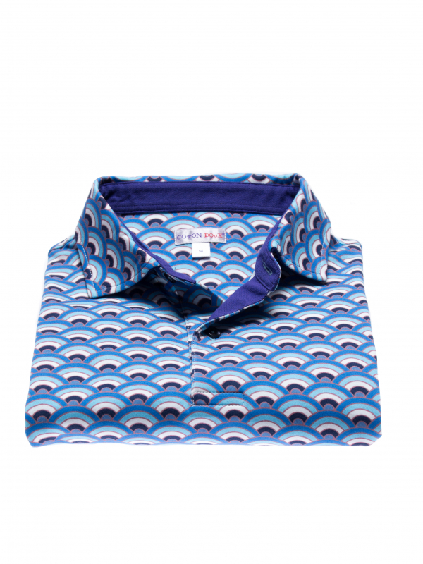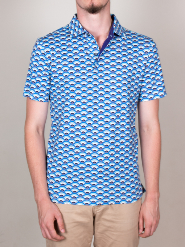 In hot weather, this regular, short-sleeved, fan printed polo shirt will be your best match! The freshness of this print is in perfect harmony with the short sleeves and the mercerized cotton jersey composition, which only provides comfort and lightness. And to enhance it all, you can rely on the two-button button placket and plain piqué cotton collar for a casual and fresh look. Wear it with navy chino pants or jeans.