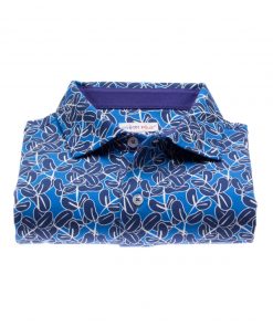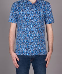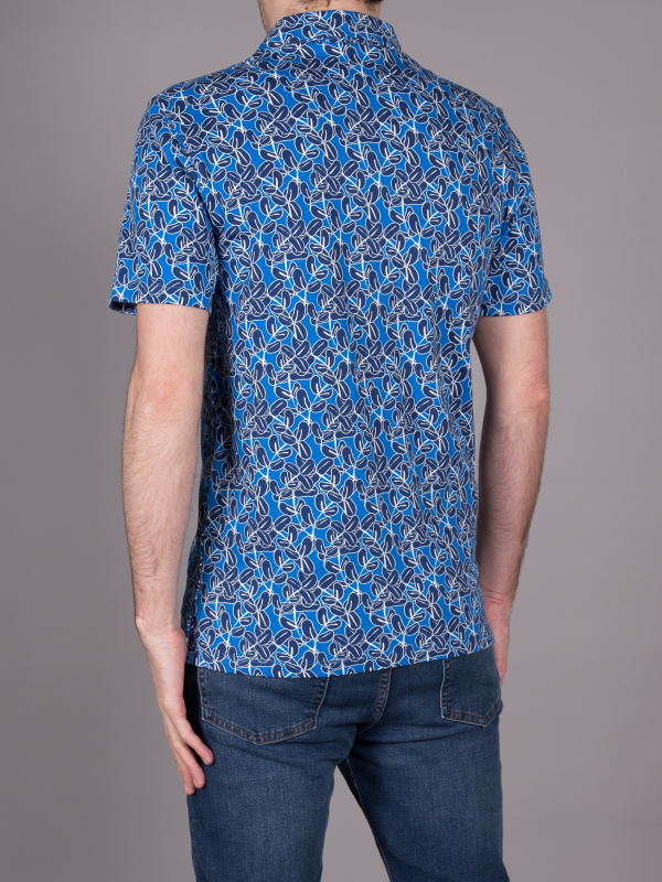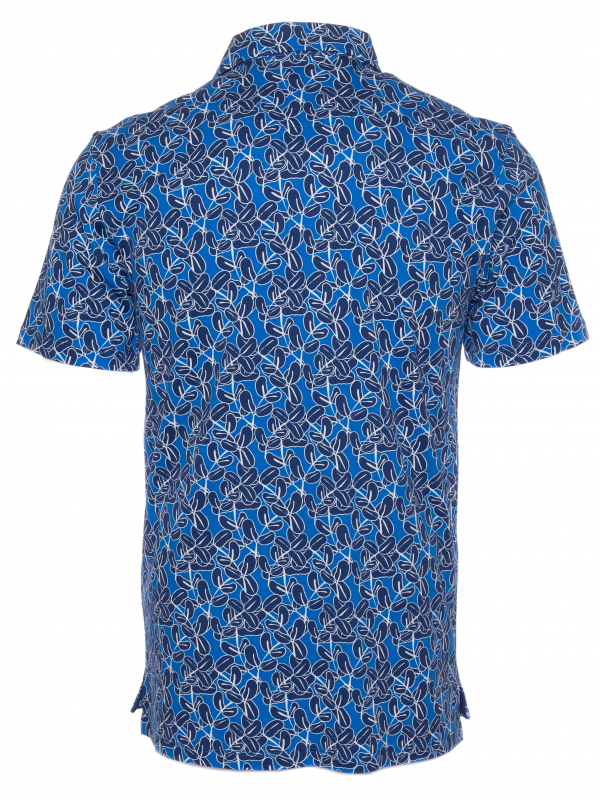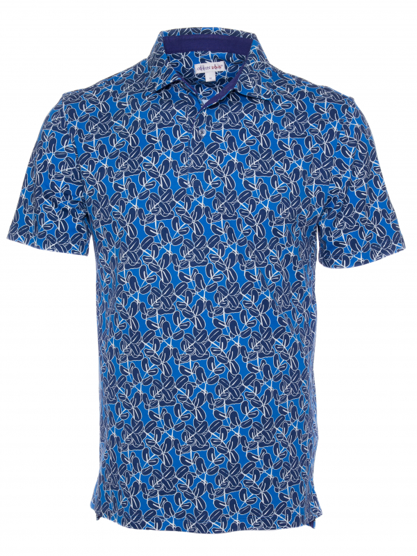 Looking for a blue polo shirt but tired of plain colors? This model with its regular fit and leaf print should be a perfect compromise! Its two-button placket will give you the choice between casualness and elegance. Its cotton piqué collar and its shades will be easy to wear with a navy chino. In cotton jersey for a lightweight effect!