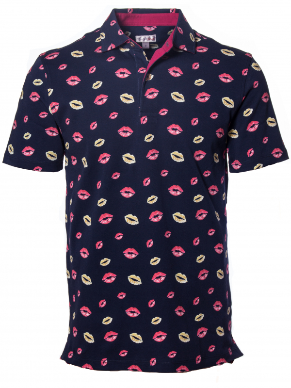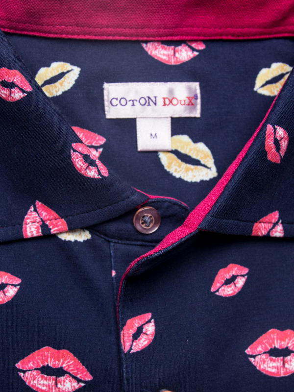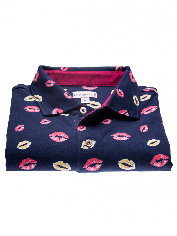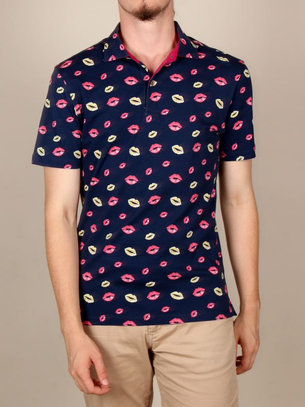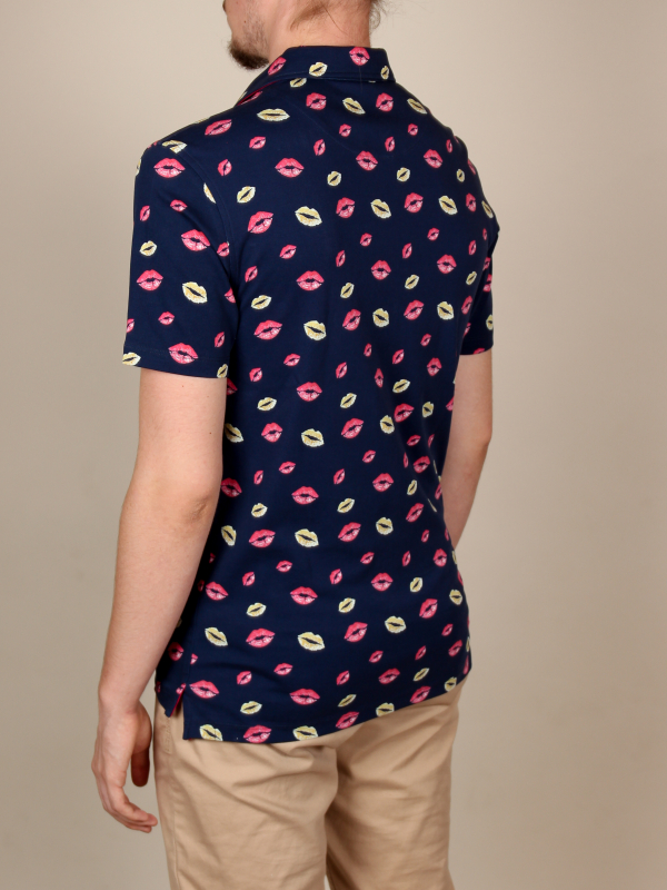 A charmer to the core? Test your seductive power with this regular fit polo with lip print. With beige chino pants and a pair of white sneakers, it will become your greatest asset for a casual and elegant look, thanks to its two-button placket, slim cut and piqué collar. Its composition in mercerized cotton jersey will seduce you.