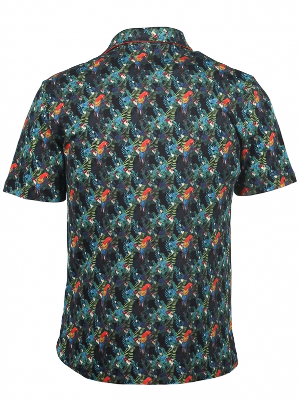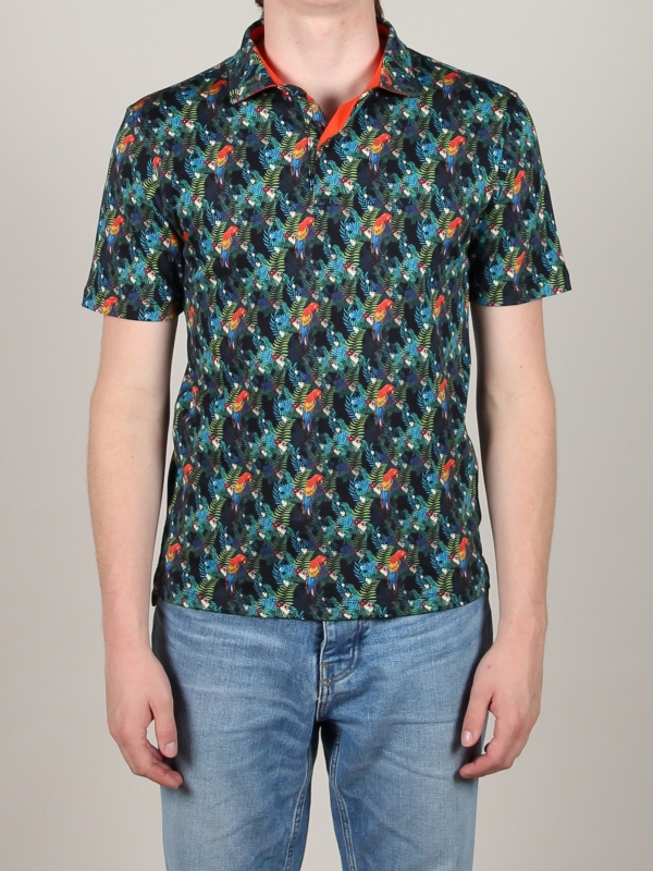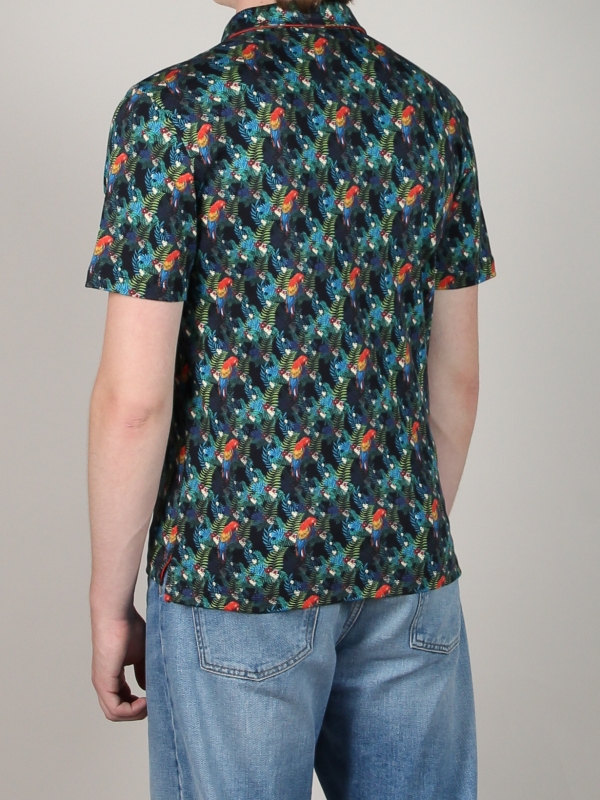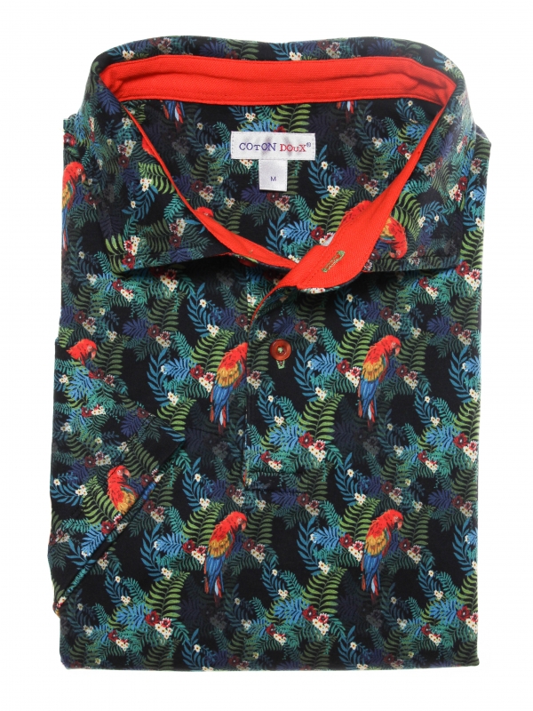If the human’s best friend is the dog, then pirates’ best friend is the parrot! Whether you’re a sailor or not, take on the adventure with this parrot-printed polo shirt.The softness of its mercerised cotton jersey won’t diminish your bravery and don’t feel bad about the comfort of its cotton piqué collar and two-button placket that you can open or close! A cargo trousers can be part of the look or simply a black denim shorts, the regular fit cut of our polo shirt will be adaptable.