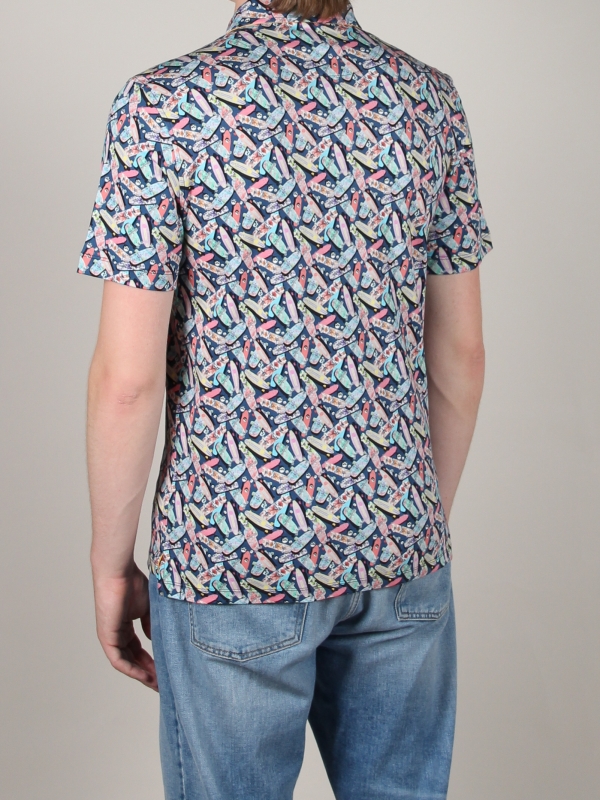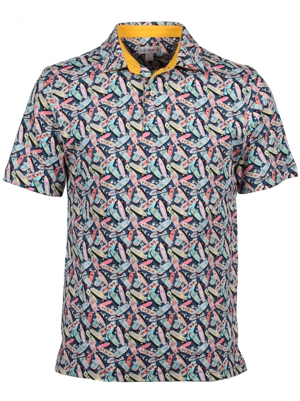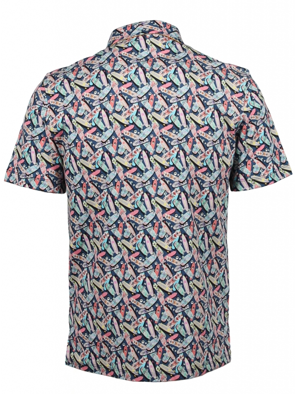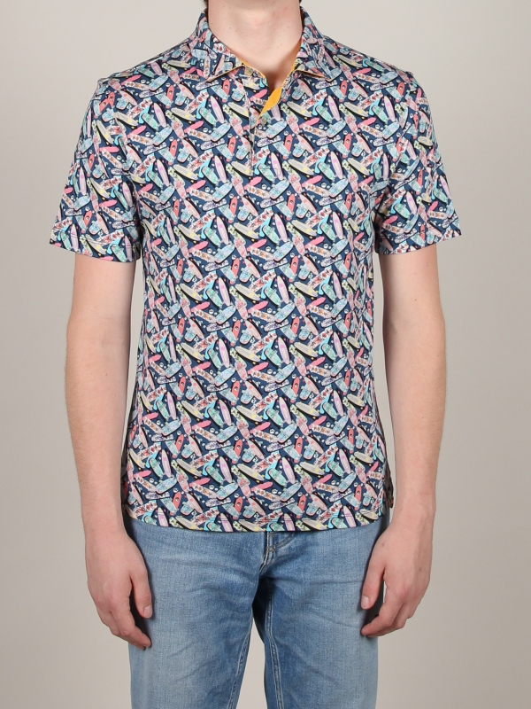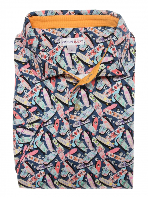 Slide on the trendy fashion style with your new skateboard printed polo shirt! You will be able to show your taste for skating as well as your taste for fashion thanks to a few essentials : two-button placket, regular fit cut, cotton piqué collar. Its mercerised cotton jersey composition ensures the comfort even at high speed. Don’t forget your pair of sneakers associates with yellow shorts to grip the skateboard to enjoy the breeze 😉