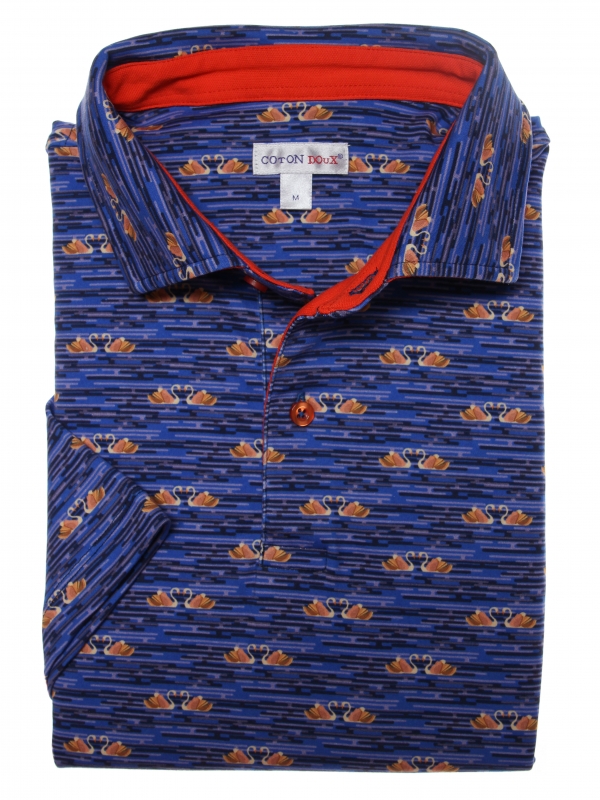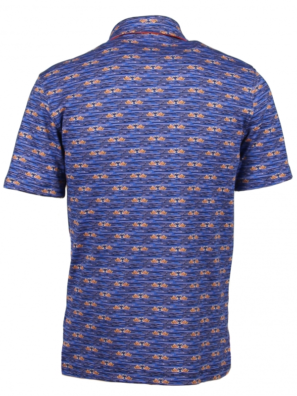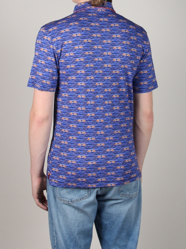Is the swan your favorite animal? If yes, must not miss the print on this Mercerised cotton jersey polo. Take time to observe the finishing touches: cotton piqué collar, two-button placket and a regular fit… Many attributes that will give you grace and class. Wear over a navy chino and under a vest of the same tone if the weather is cool, to highlight those “coiled” birds.