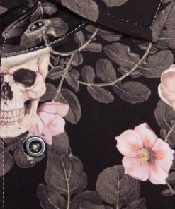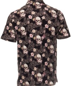 With its bold vanities flowers print, this polo features vibrant skulls and soft florals on a deep black backdrop. Made from mercerized cotton jersey, it offers a smooth, comfortable fit. The cotton piqué collar adds refinement, while the regular fit and two-button placket complete the look. A striking fusion of edgy style and classic craftsmanship.
