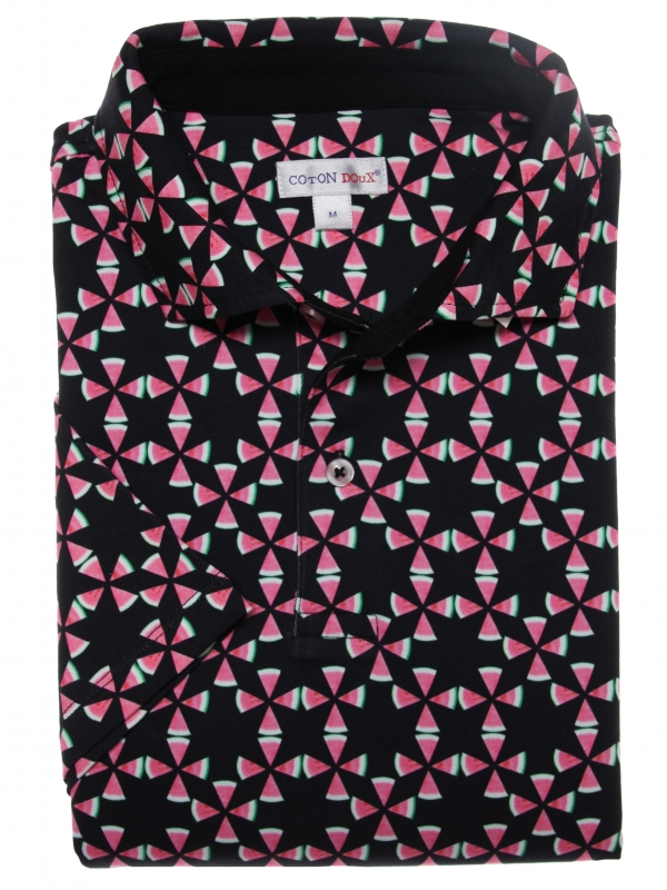 This watermelon print polo is so refreshing you’ll almost want to bite into it! You’ll also be tempted by the softness of its cotton piqué collar and its trendy regular fit. Its mercerised cotton jersey fabric will keep you cool on hot summer days and its two-button placket will open easily for a free neck. To enhance this fuchsia pink/black contrast, opt for black pants too.