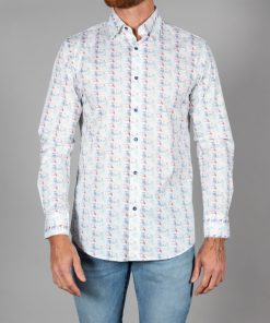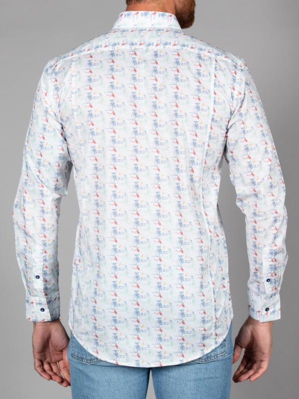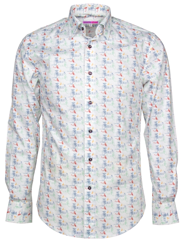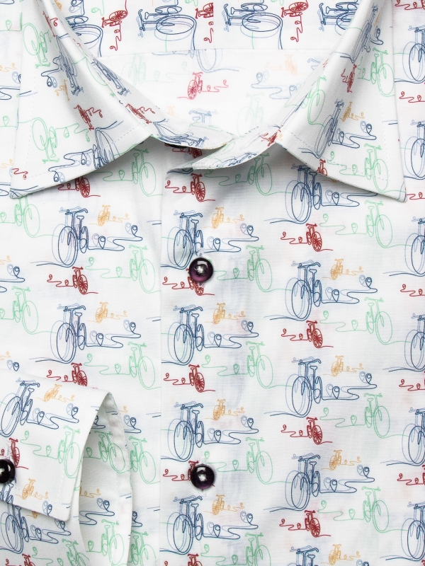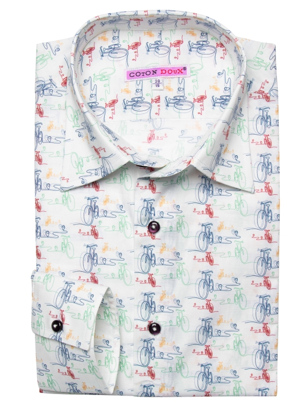 Pedal into style with our Bike Print shirt. Featuring charming bicycle motifs, this shirt adds a playful and adventurous touch to any outfit. Designed with a classic collar and a regular fit for maximum comfort and style.Team it with navy blue chino shorts and white canvas sneakers for a cool and laid-back look.This shirt promises to ride along with you in effortless style!