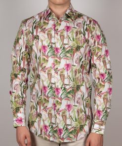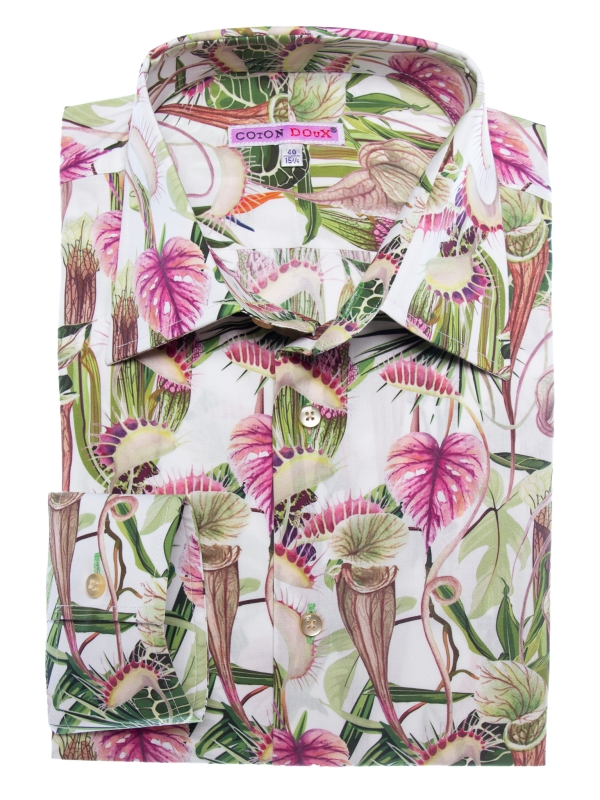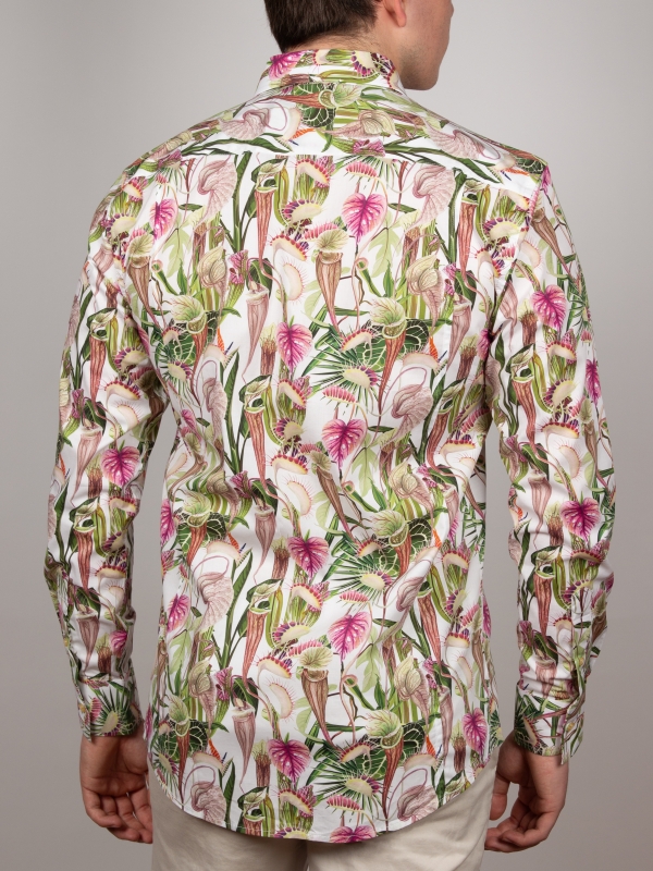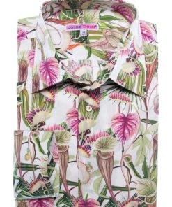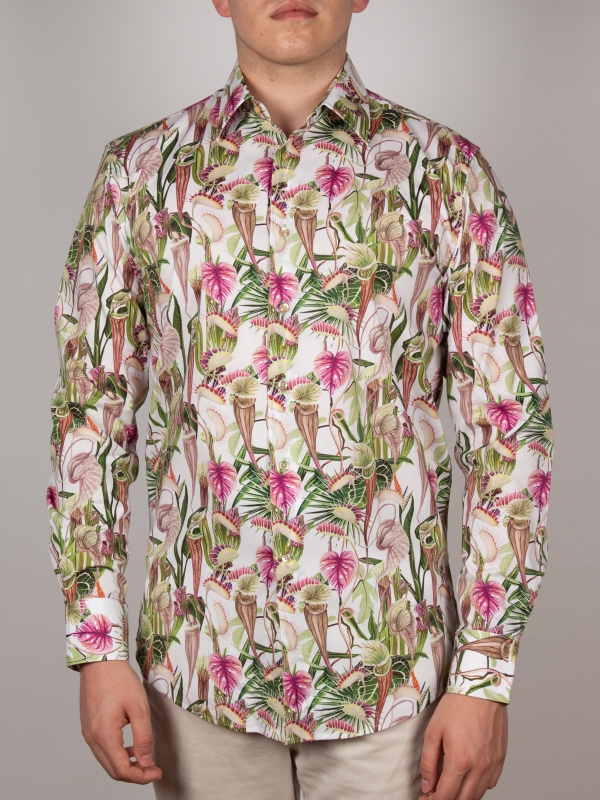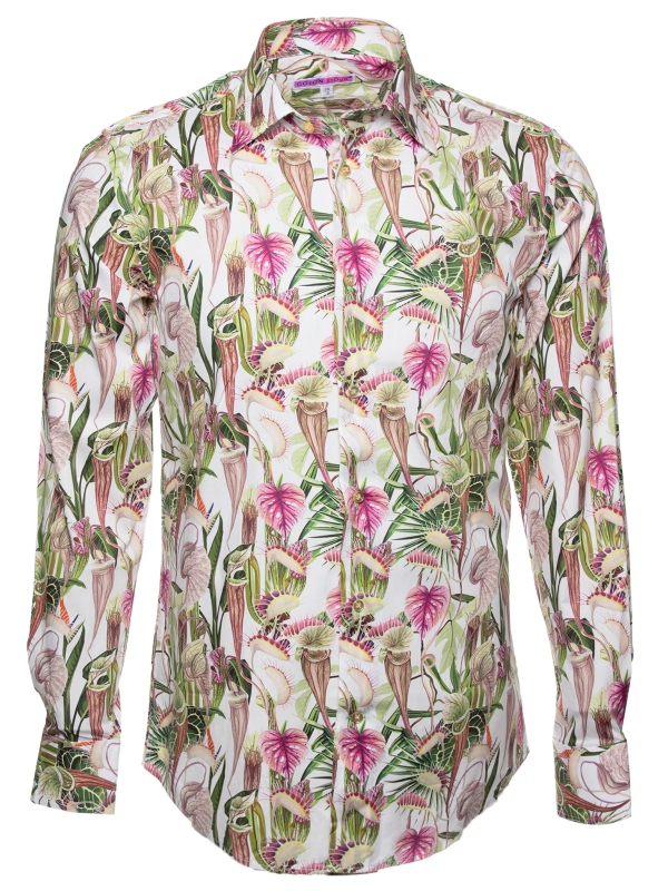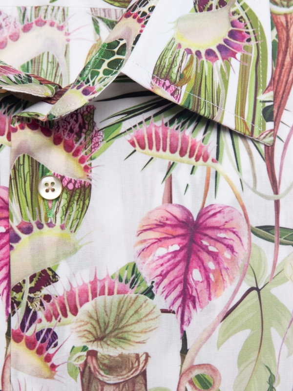 Turn heads with this bold, character-filled carnivorous plant print shirt. Its regular cut flatters the silhouette, while the Milanese collar and simple cuffs add a touch of sophistication. The design, where botanical elements meet a hint of fantasy, skillfully blends nature with uniqueness.