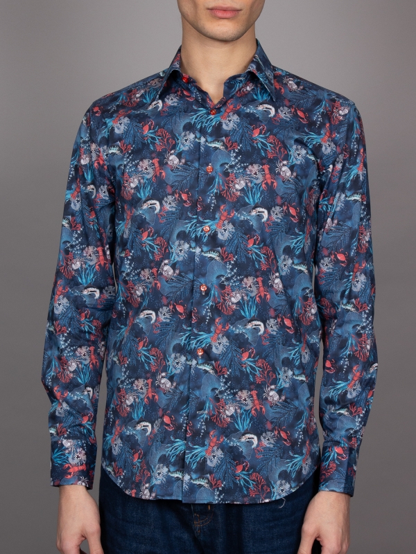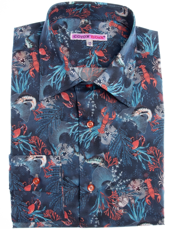 Coton Doux Men’s Regular Fit Shirt With Corals Print
