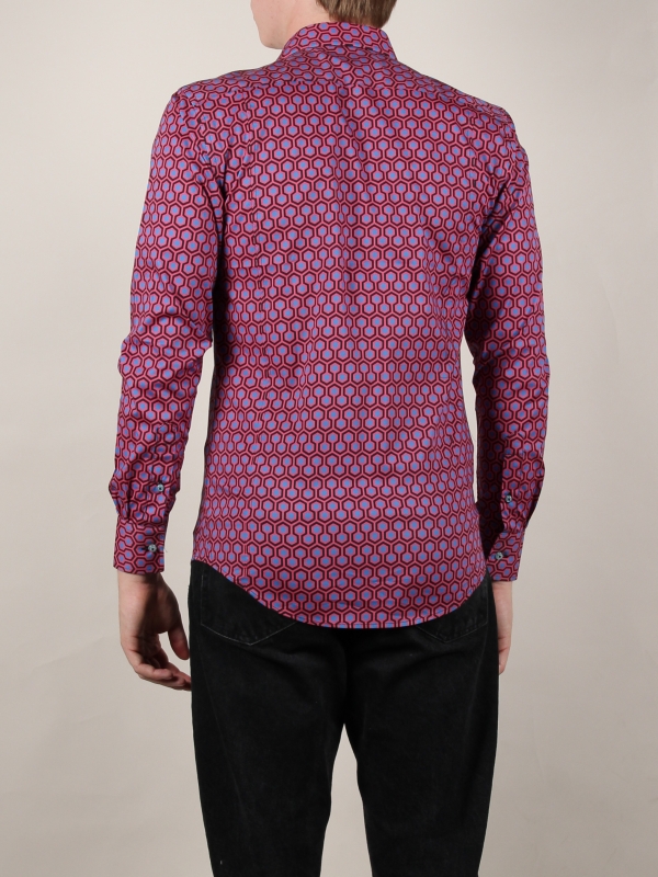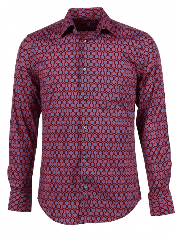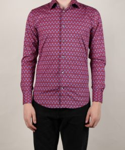 If you like the discretion of geometric shapes and the originality of prints, let yourself be tempted by this fuchsia and blue shirt. Featuring a Milanese collar and simple cuffs and designed with a regular cut, it’s sure to give you all the elegance and uniqueness you need! Try wearing it with raw denim or navy cargo pants for a better effect and go for the style.