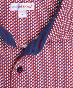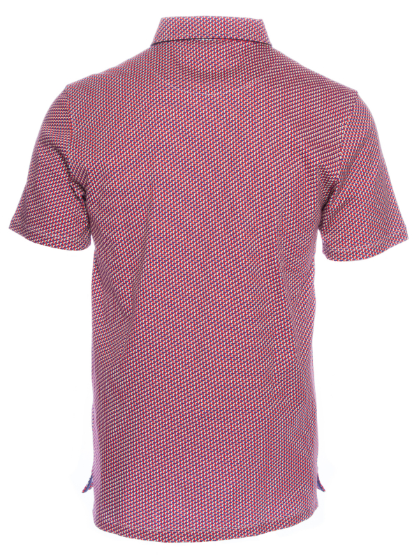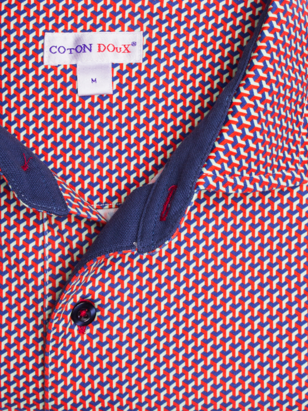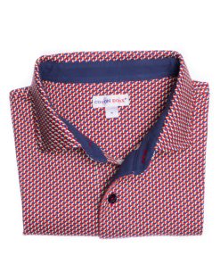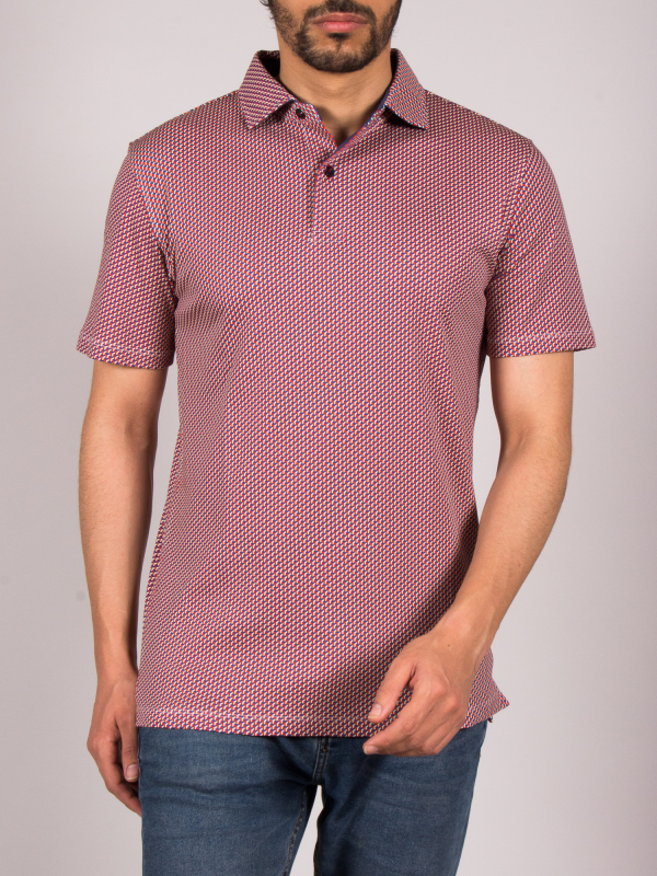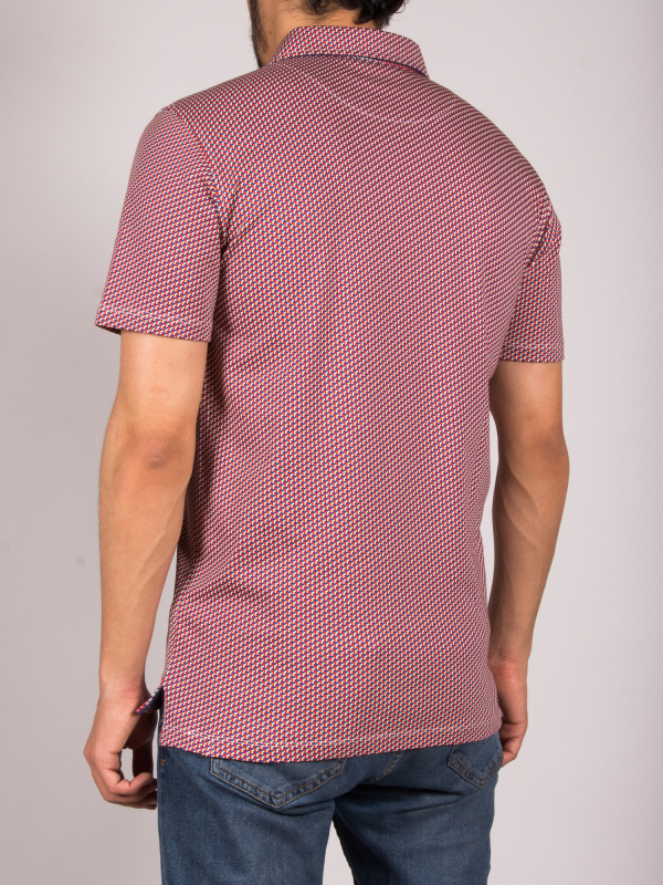 Here is a trio of colors that won’t be unnoticed on this regular fit polo shirt. The geometric cube print will win the votes of classic pattern lovers while keeping the originality. Your style will be casual enough to wear it daily thanks to its mercerized cotton jersey and short sleeves. The cotton quilted collar and the two-button placket won’t be unnoticed either. Keep up your timeless momentum by wearing it with simple navy trousers and white sneakers.