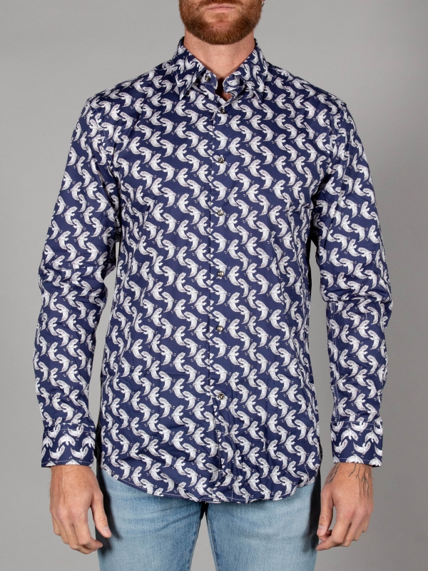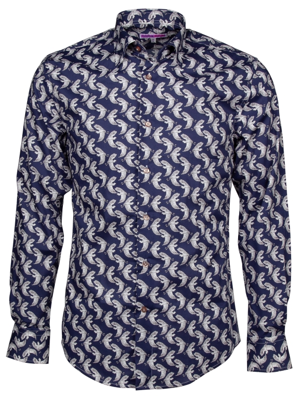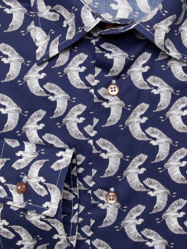 Grace your wardrobe with our Herons Print shirt, adorned with majestic heron motifs that exude tranquility and grace. Featuring a classic collar and cut in a regular fit for timeless comfort and style, this shirt is perfect for casual outings.Pair it with crisp white trousers and loafers for a fresh and refined look, it pledges to enhance your appearance with an air of tranquil sophistication wherever you go.