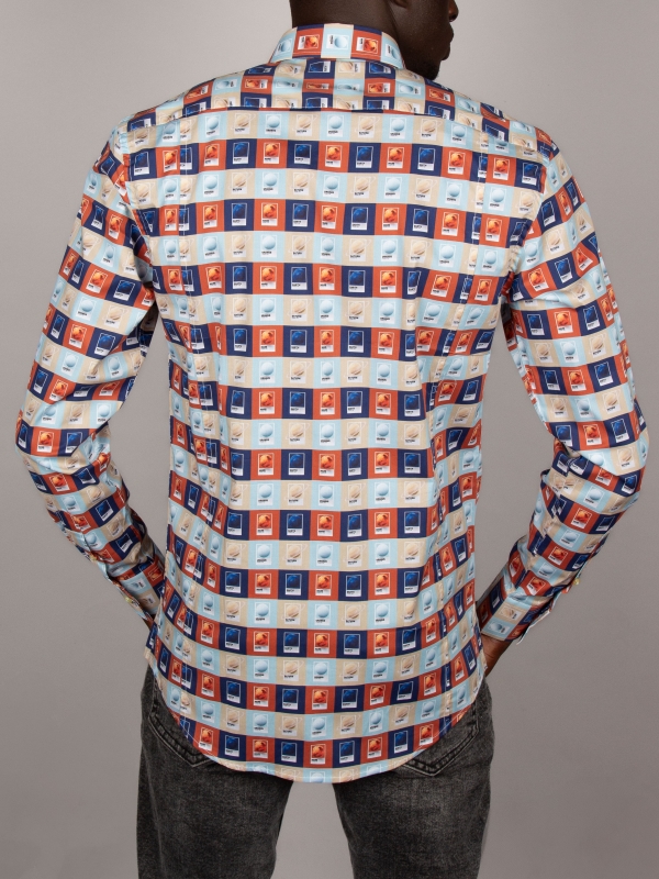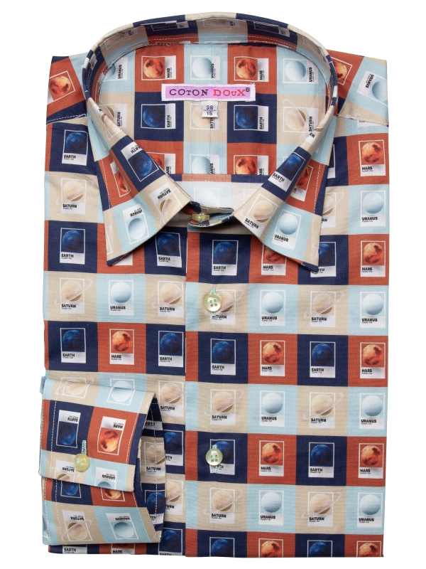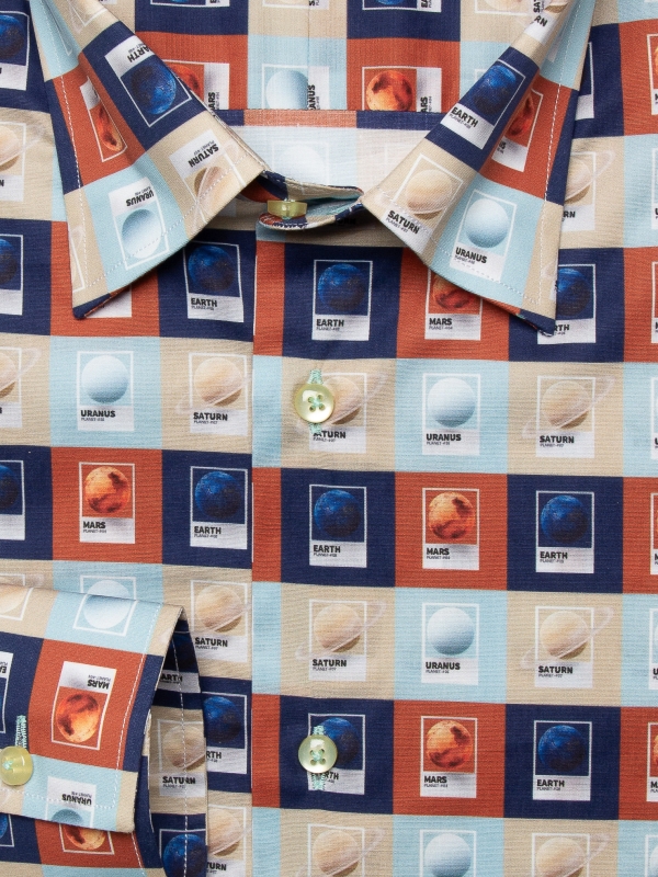 Embark on an intergalactic journey with our Planets Print shirt. Featuring a cosmic array of planets, each with its own unique charm and colors, this shirt is a stellar addition to your wardrobe. With a classic collar and tailored in a regular fit for comfort and style, Combine it with dark wash denim jeans and sleek sneakers for a modern and cosmically-inspired ensemble.This shirt guarantees to elevate your style to stellar heights with cosmic charm!