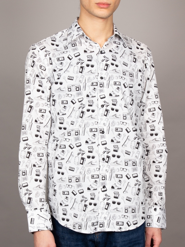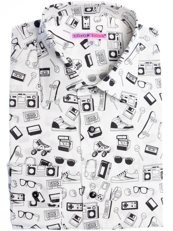 Coton Doux Men’s Regular Fit Shirt With Retro Items Print