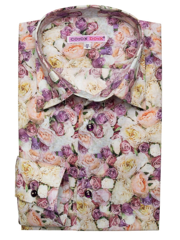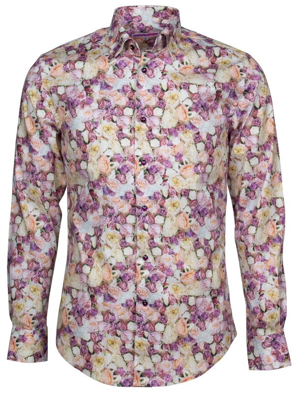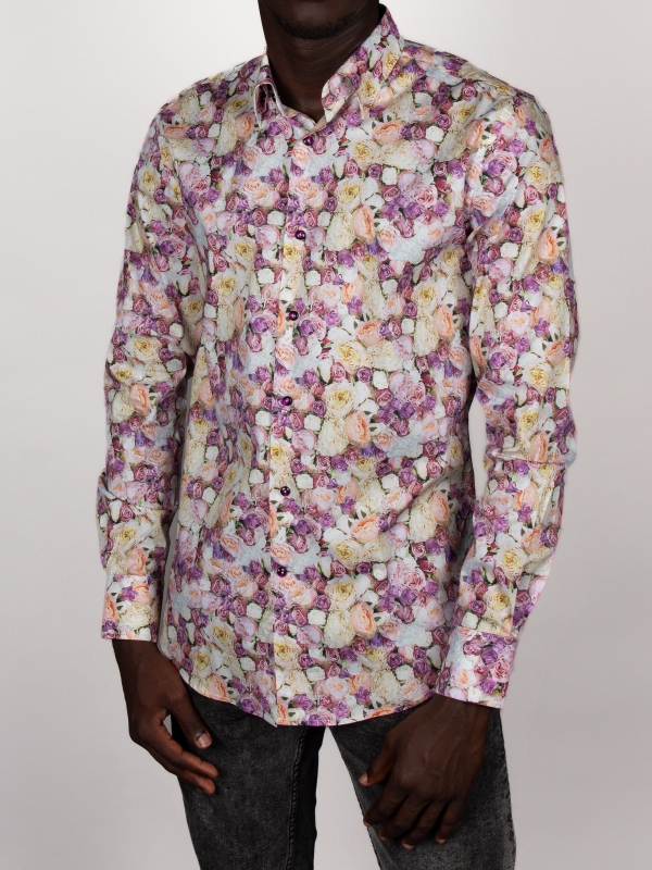 Step into elegance with our Roses print shirt, adorned with delicate rose motifs that embody romance and grace. Designed with a classic collar and tailored in a regular fit for comfort and versatility, this shirt effortlessly transitions from day to night. Combine it with navy blue slim-fit trousers and suede loafers for a refined and sophisticated ensemble that complements the shirt’s romantic motif and timeless appeal.