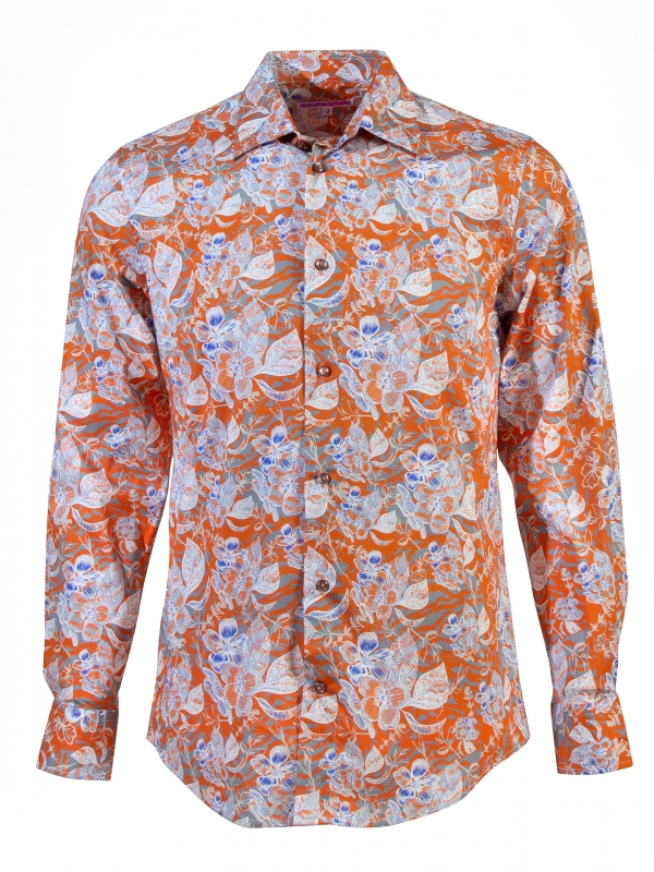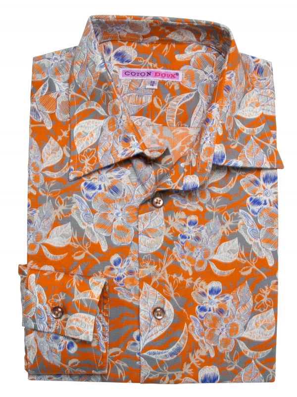 Coton Doux Men’s Regular Fit Shirt With Tropical Flower Print