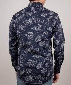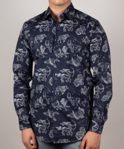 Add a celestial spark to your wardrobe with this star sign print shirt. Featuring a regular fit that shapes a sleek, modern silhouette, it’s detailed with a polished Milanese collar and minimalist cuffs. Delicately rendered constellations and celestial symbols create a mysterious and captivating pattern that enchants at every glance. Ideal for those who want to showcase their style with personality and a subtle cosmic touch.