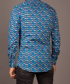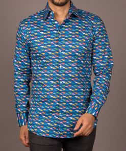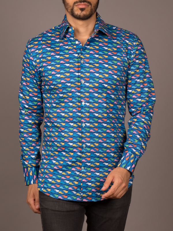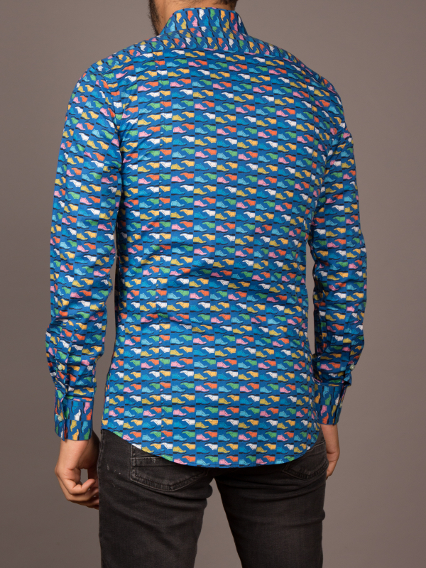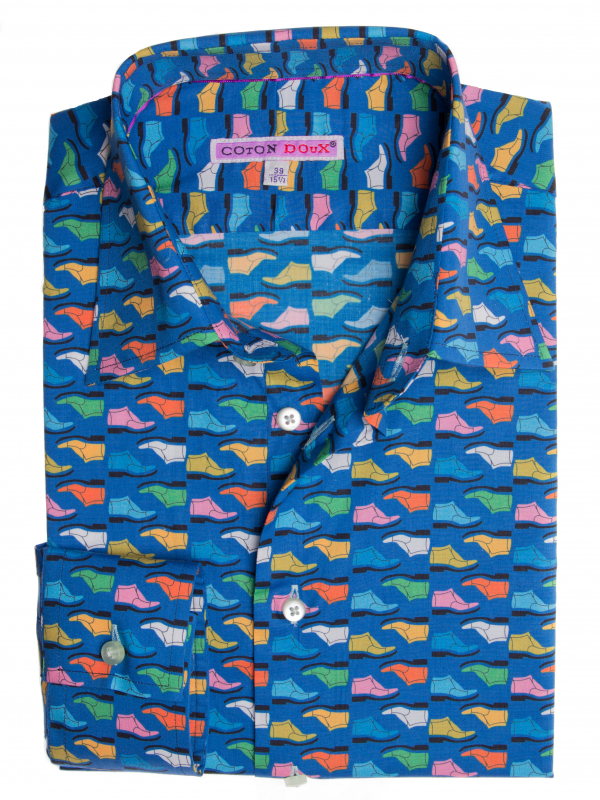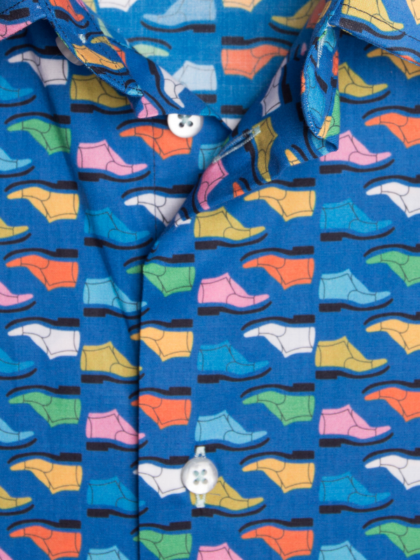 Bring everyone to your feet with this Men’s slim fit shirt with shoes print. Combined with raw jeans or beige chino pants, this shirt with its Milanese collar and single-button cuffs will give a touch of elegance to your outfit. A silk pocket square in a warm color and a tweed jacket will bring the look together.