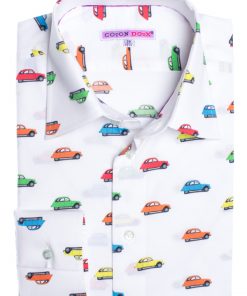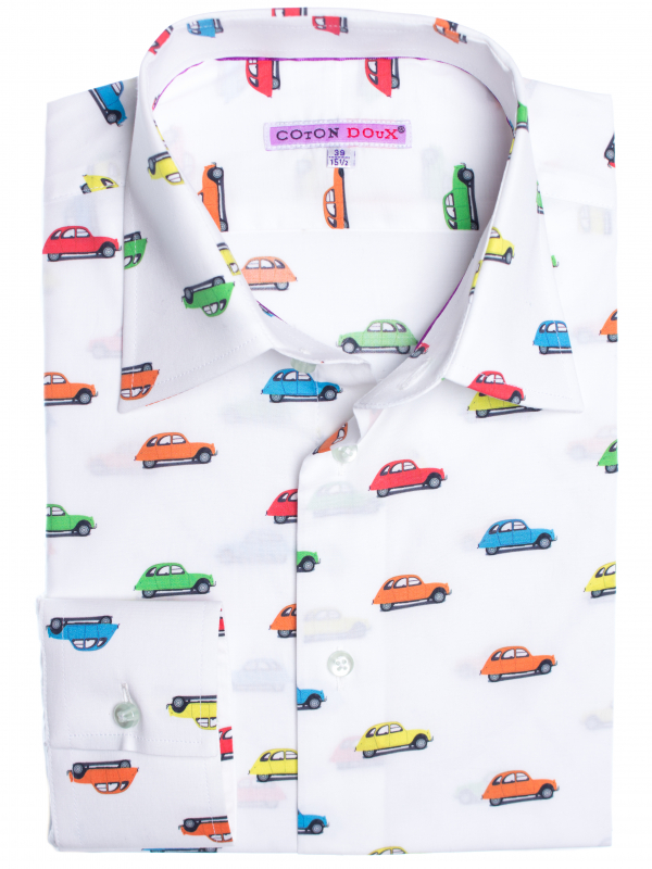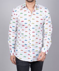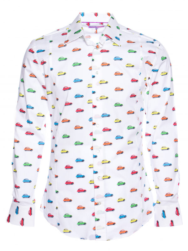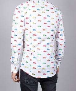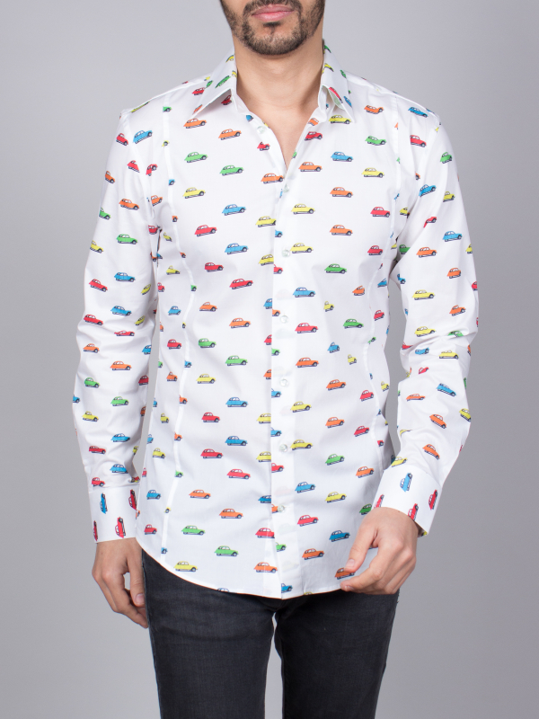 Professional collector or an amator, you will love this printed shirt. Its small cars print on the white background stand out in different colors and will be properly highlighted by colorful pants. You will appreciate also its Milanese collar, its slim fit and its very elegant single-button cuffs. Let’s run the engine!
