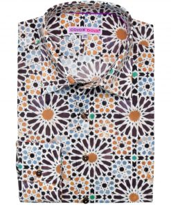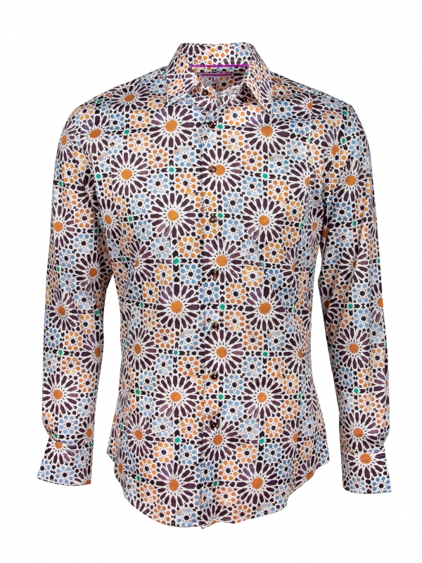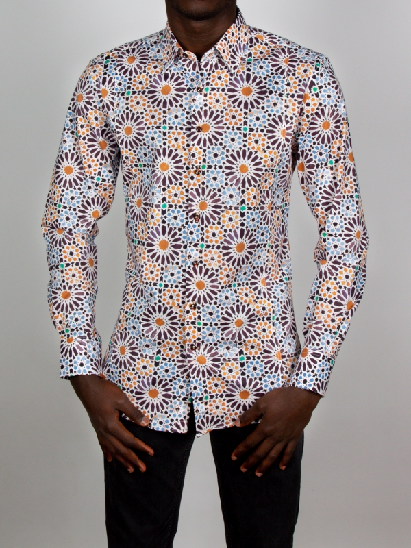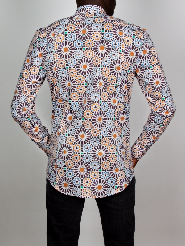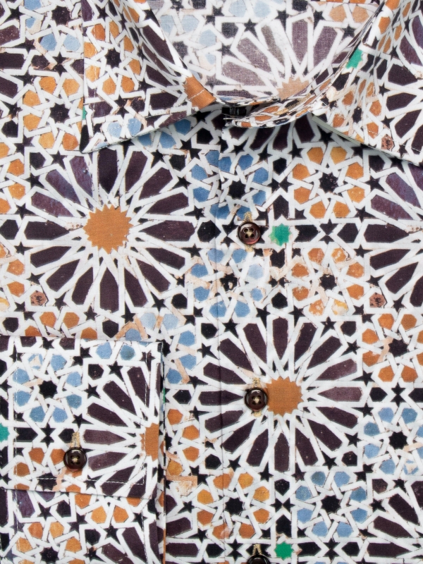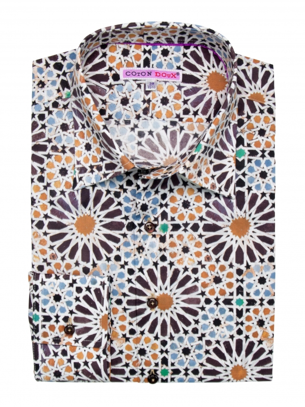 The dancing and hypnotizing fusion of geometric shapes and colors of this Zellige print makes this shirt an ally to wear in all circumstances! On a brown chino or anthracite gray jeans, the reflection will be most beautiful and you can cement it all with a beige linen jacket if the weather is cool. And what about its Milanese collar, simple cuffs, and a slim cut? The secret to irresistible style: a trio of details guaranteed to turn heads.