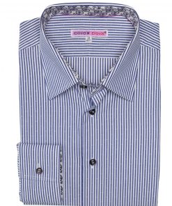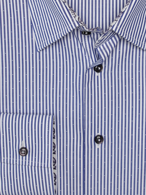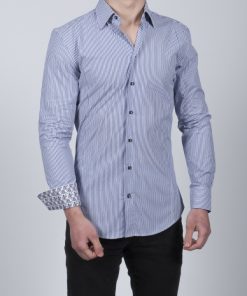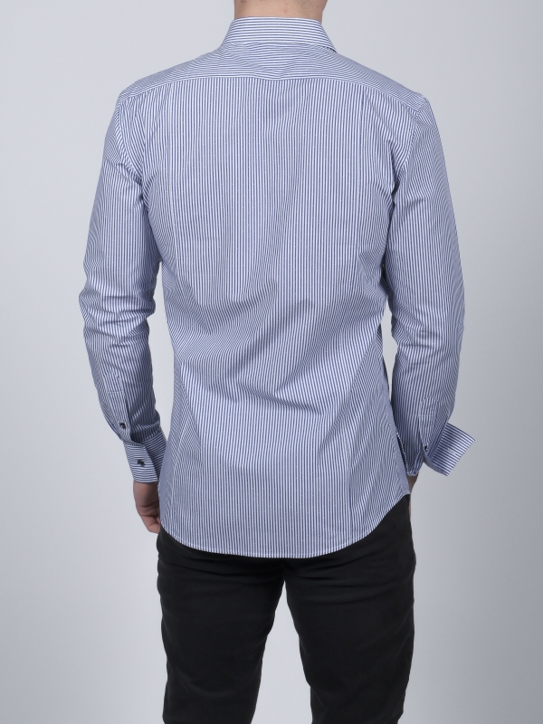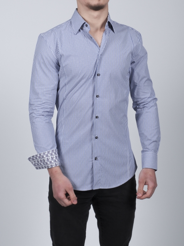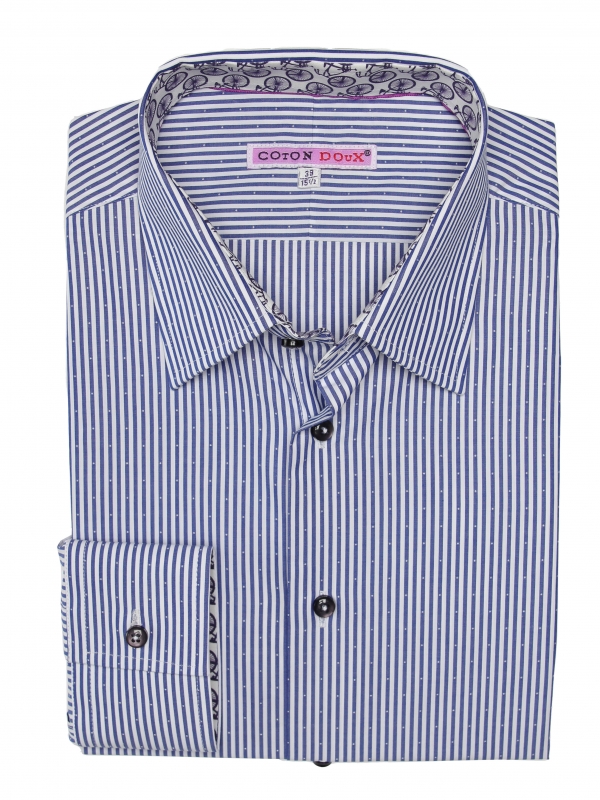 Saddle up! With this white shirt with blue stripes. The bicycle print on its Milanese collar and its single cuffs will add an extra touch to your sense of taste! You will also appreciate its slim fit. Light blue jeans with a sleeveless jacket and white trainers will make you the definition of a modern city dweller.