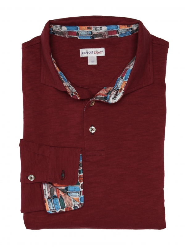 Knock knock, do you know who’s here? The long sleeves polo shirts in pure cotton have arrived at Coton Doux! The doors inner lining print will hide many surprises… So don’t hesitate to open them in your life, opportunities are not to be missed! The elegance of the cotton piqué collar and its two-button placket will ensure a chic presence at each of your meetings. The slim fit and double button cuffs make for a comfortable fit. Black jeans and a pair of brown boat shoes will give you a masculine style.