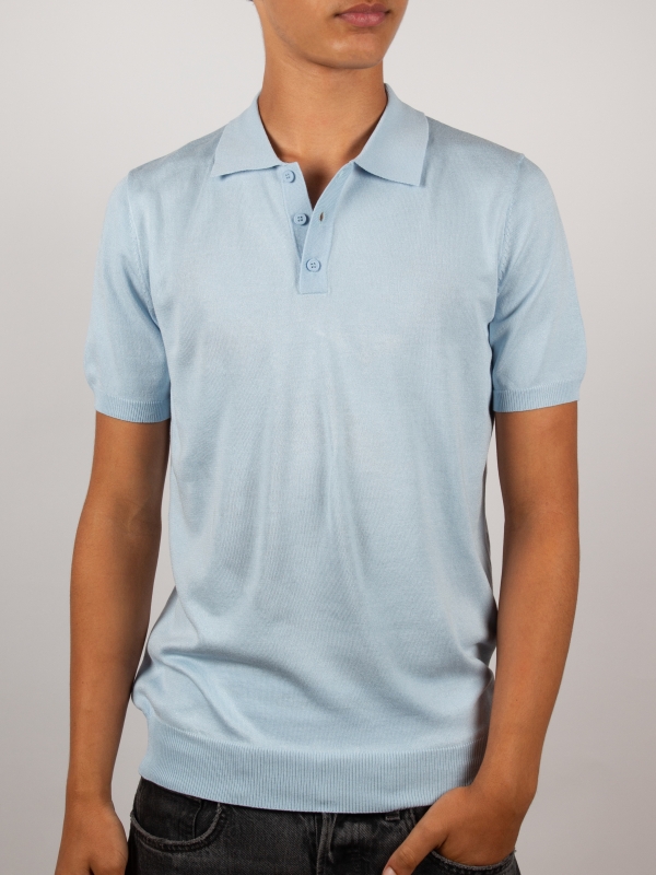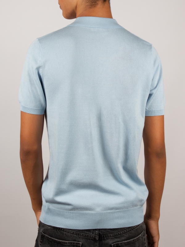 Light and refined, this light blue knit polo with a regular fit exudes a summery charm. Featuring a classic collar, a three-button placket, and short sleeves, it strikes the perfect balance between casual and elegant. Easy to pair, it quickly becomes an essential piece for your seasonal wardrobe.