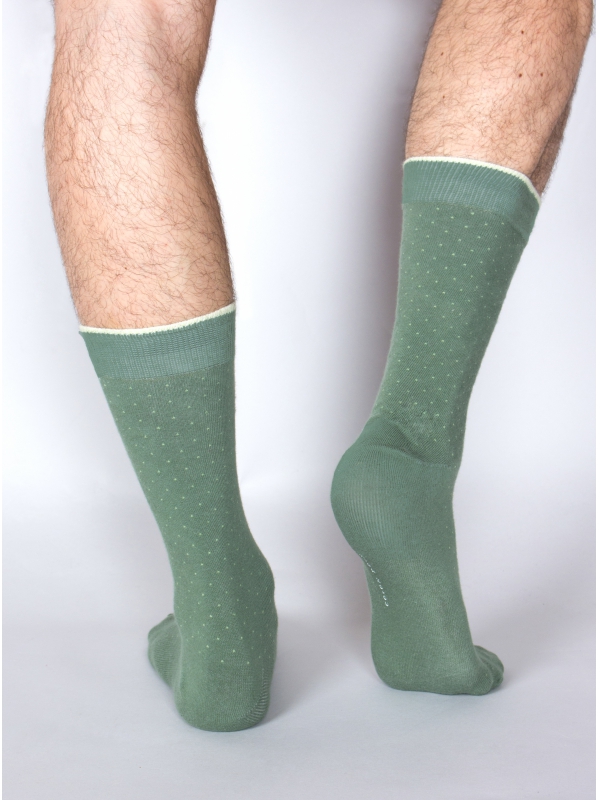 If you have a more classic style, but aren’t afraid of a little colour, then these are the socks for you! This rather sober looking pair provides a dash of clariy with light green dots throughout. Wear with jeans or trousers in beige, grey or black. 80% cotton / 18% polyamide / 2% elastane
