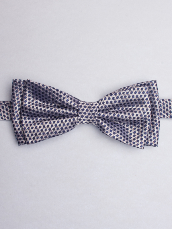 Pair your brown chino with this grey bow tie, a light blue shirt and navy blue jacket. The blue hexagons patterns will add some relief. So dressed, you can be assured of your style and your elegance!