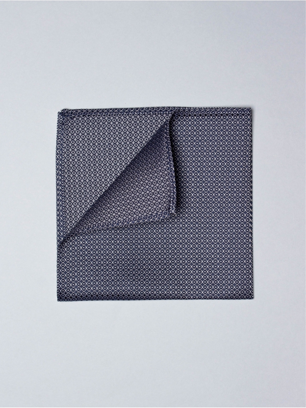 Coton Doux Uniex Navy Blue Pocket Square With Grey Patterns