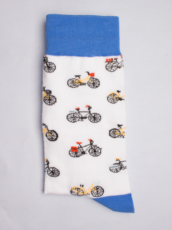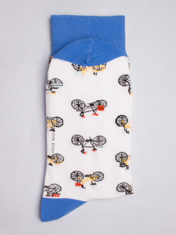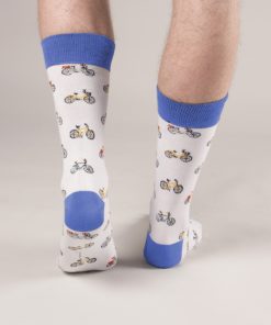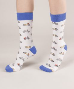 Coton Doux Uniex Socks With Bike Pattern And Blue Inner Lining