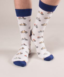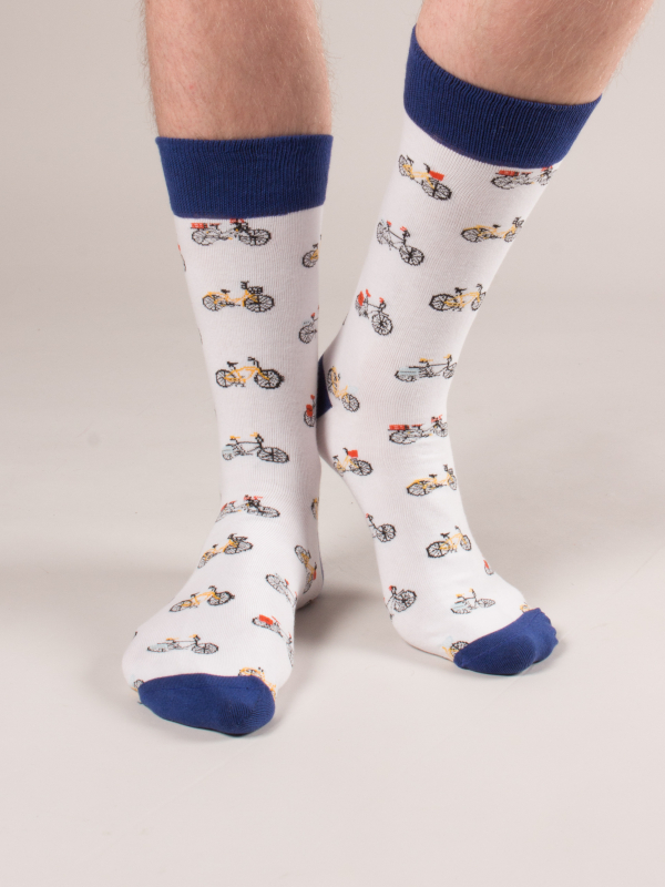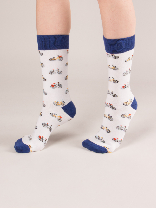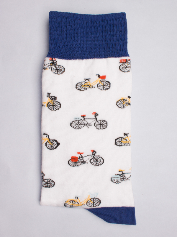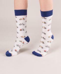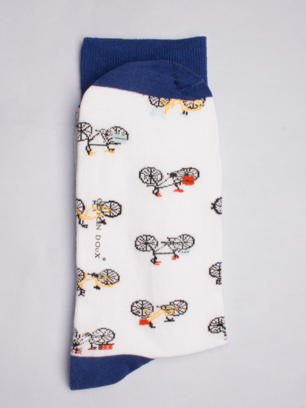Coton Doux Uniex Socks With Bike Pattern And Navy Inner Lining