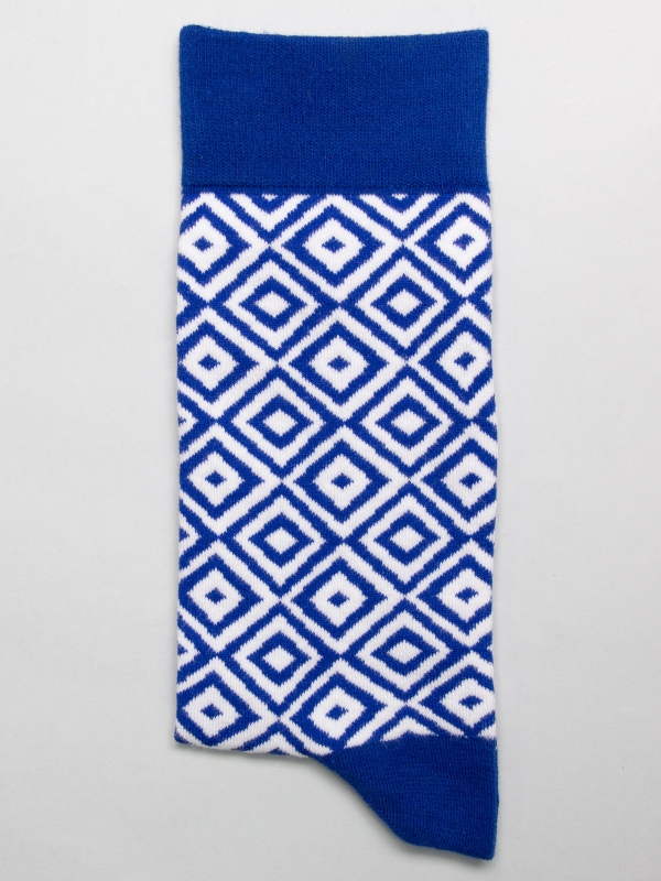 Step into a world of geometric charm with these socks featuring a captivating blue square pattern. Each square weaves a tale of modern sophistication and vibrant rhythm, adding a touch of abstract artistry to your every move. Let your feet dance in a symphony of shapes and shades.The model wears a size 38-41.