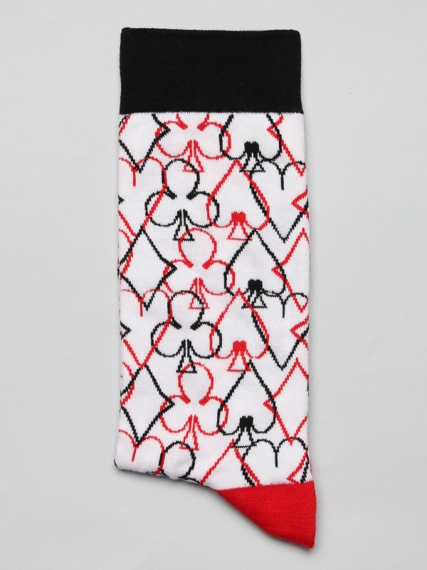 You have no more excuses to lose! This pair of socks with a card game pattern will bring you lot of luck. Put them on in the morning for a winning soft day thanks to its cotton composition. So ready to bet that this accessory will become your essential?